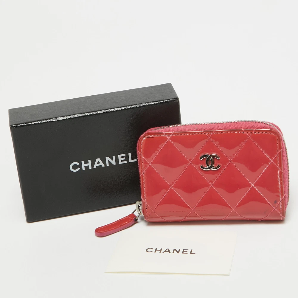 Keep all your change in one place so you do not have to go to the depths of your bag in search for it every time. Chanel brings you this stunning coin purse for exactly that purpose. Crafted from stunning quilted Caviar leather, this purse makes for an extremely stylish look with the timeless CC logo on the front.Certified by The Luxury Closet - This item has gone through a detailed authentication process overseen by our experts. We offer a lifetime guarantee of authenticity on all our items. Import duties, taxes and charges are not included in the item price. These charges are the buyers responsibility. Please check with your country’s customs office to determine what these additional cost will be prior to buying. Our eBay Store About Us Contact Us Add to Favorite Sellers Chanel Pink Quilted Patent Leather CC Zip Coin Purse $632.5 Keep all your change in one place so you do not have to go to the depths of your bag in search for it every time. Chanel brings you this stunning coin purse for exactly that purpose. Crafted from stunning quilted Caviar leather, this purse makes for an extremely stylish look with the timeless CC logo on the front. Product Details Brand Color Pink Dimensions Height: 8 cm, Width: 2 cm, Length: 11 cm Material Patent Leather, Leather Size Outsole Width Outsole Length Heel Height Includes Original Box, Info Booklet Certified by The Luxury Closet This item has gone through a detailed authentication process overseen by our experts. We offer a lifetime guarantee of authenticity on all our items. How We Check The in-house team of experts at The Luxury Closet is highly trained to verify the authenticity and the condition of the luxury products. They ensure that only 100% authentic items are put on sale.The evaluation process is unique with its own mix of assessment criteria and differs according to the category. Each item is evaluated based on the following combination of hallmarks, hardware, stitching, symmetry, material, craftsmanship, stamping, codes, hologram stickers, and packaging. Our authenticators also check if the items have been modified or amended (e.g., aftermarket diamonds, replaced batteries, repaired bags, etc.) International Buyers Import duties, taxes and charges are not included in the item price. These charges are the buyers responsibility. Please check with your country’s customs office to determine what these additional cost will be prior to buying.