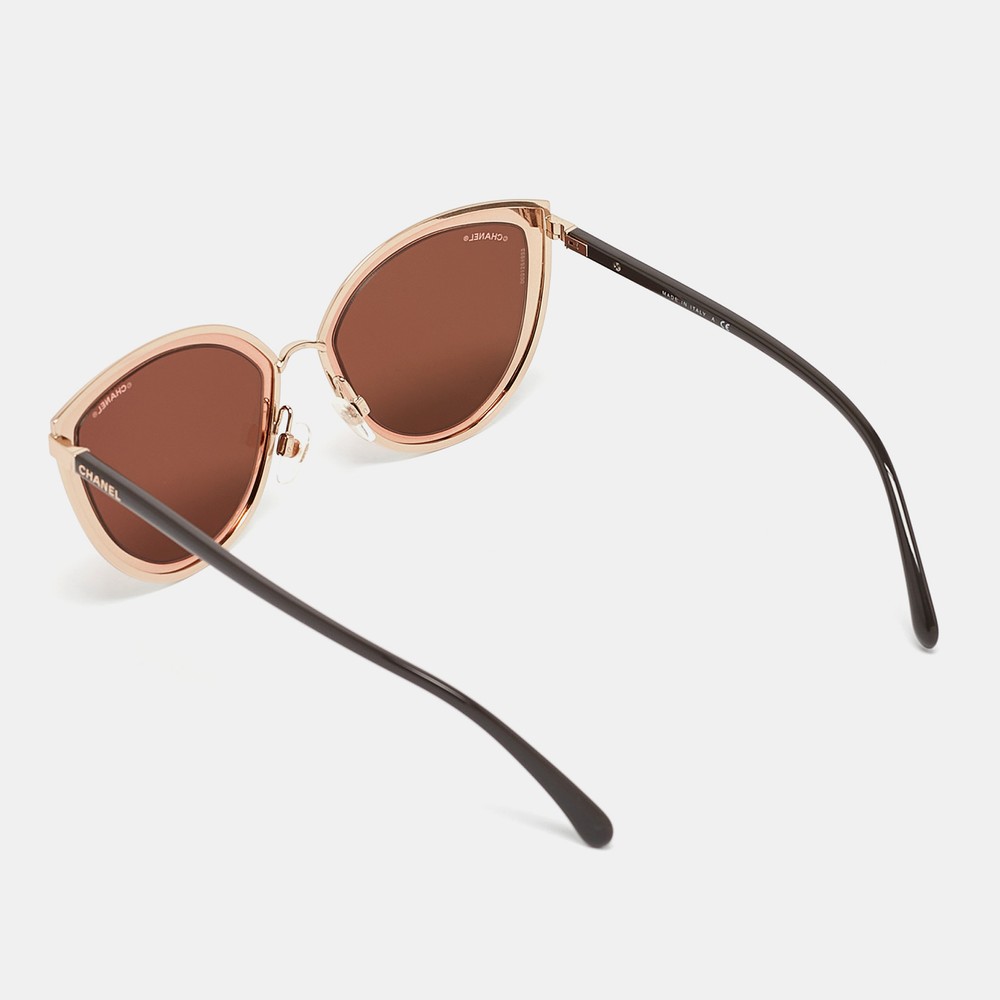 We see the detailing on this exquisite pair of designer sunglasses made from fine materials. The sunglasses are luxe in appeal and practical in usage.Certified by The Luxury Closet - This item has gone through a detailed authentication process overseen by our experts. We offer a lifetime guarantee of authenticity on all our items. Import duties, taxes and charges are not included in the item price. These charges are the buyers responsibility. Please check with your country’s customs office to determine what these additional cost will be prior to buying. Our eBay Store About Us Contact Us Add to Favorite Sellers Chanel Rose Gold/Brown Mirrored 422 Cat Eye Sunglasses $544.5 We see the detailing on this exquisite pair of designer sunglasses made from fine materials. The sunglasses are luxe in appeal and practical in usage. Product Details Brand Color Gold Dimensions Material Acetate, Metal Size Outsole Width Outsole Length Heel Height Includes Original Case, Original Dust Cloth Certified by The Luxury Closet This item has gone through a detailed authentication process overseen by our experts. We offer a lifetime guarantee of authenticity on all our items. How We Check The in-house team of experts at The Luxury Closet is highly trained to verify the authenticity and the condition of the luxury products. They ensure that only 100% authentic items are put on sale.The evaluation process is unique with its own mix of assessment criteria and differs according to the category. Each item is evaluated based on the following combination of hallmarks, hardware, stitching, symmetry, material, craftsmanship, stamping, codes, hologram stickers, and packaging. Our authenticators also check if the items have been modified or amended (e.g., aftermarket diamonds, replaced batteries, repaired bags, etc.) International Buyers Import duties, taxes and charges are not included in the item price. These charges are the buyers responsibility. Please check with your country’s customs office to determine what these additional cost will be prior to buying.