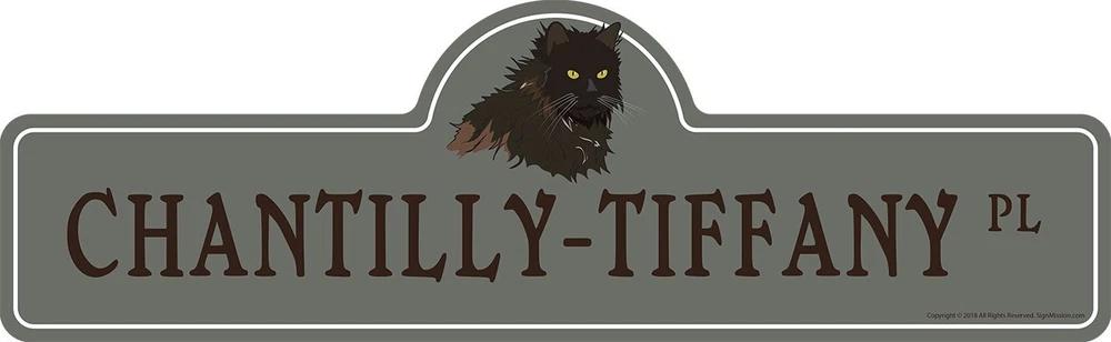 Get a fun Chantilly-Tiffany Street sign for your home or office and show off your love for your favorite breed. Looking for a fun, cute street sign to hang on your cubicle or in your “ man cave? If so, has all the cute, funny, hilarious, and even work-related signs you're looking for! Something for Everyone Weve got a wide range of American-made signs just like this Chantilly-Tiffany sign that will remind you of your best friend, make others smile, or Just let everyone around know you are a real cat lover. Colorful and Durable street signs are crafted with specialty inks that perfectly highlight its colors and image & are printed directly onto outdoor-durable plastic making this sign very scratch resistant. And because they're safe for indoor and outdoor use, you can stick on your patio, in the living room, or anywhere else you want to get people smiling and talking about how much they love cats. Product Details: Stoner Street SignPre-Cut Mounting Holes Indoor and Outdoor Use Rust and Fade Resistant -Sided Patented Scratch Resistant Ink Dimension: 8 x 24Made in the USA Outdoor Durable Plastic Click ' Add to Cart to get your Chantilly-Tiffany sign today and smile each time you pass by! SIZE - 8" X 24" – Good for decorating a work space or hanging in a den, this Cat street sign also makes a great gift. Crisp, Clear Image – This sign features a high-definition image and a matte finish that pops with color and fun imagination. Quick & Easy Mount – Comes with pre-cut mounting holes for hanging