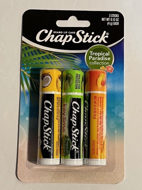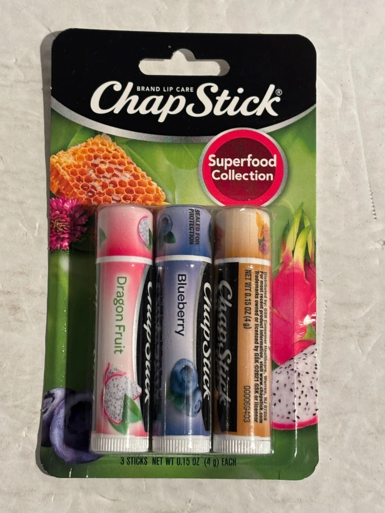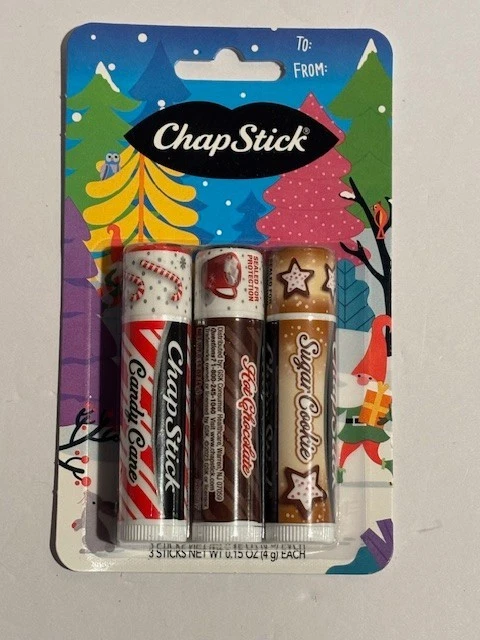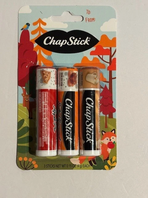 Chapstick Limited Edition 3 packs available. The following 3 packs are available. Each individual container is .15 oz You're My Hero Collection: Powerful Peach, Amazing Mint, Watermelon Wonder S'Mores Collection: Graham Cracker, Marshmallow, Milk Chocolate Tropical Paradise Collection: Mango, Key Lime, Aloha Coconut I Love Summer Collection: Pink Lemonade, Sweet Watermelon, Peaches and Cream Spa Collection: Mint Tea, Rose Water, Almond Oil Pumpkin Pie: 3 Pumpkin Pie Flavors Coffee Collection: Caramel Macchiato, Mint Mocha, Vanilla Latte Vacation Getaway: Snow Cone, Limeade, Cotton candy Vanilla Favorites Collection: Vanilla Mint, Vanilla Bean Ice Cream, Vanilla Cupcake Candy Cane Collection: 3 Candy Cane flavors Cake Batter Collection: 3 Cake Batter Flavors Ice Cream Classics: Fudge Sundae, Mint Chocolate Chip, Cookies and Cream Mocktail Collection: Mojito, Strawberry Daiquiri, Pina Colada Superfood Collection: Dragon fruit, Blueberry, Clover honey Christmas Collection: Candy Cane, Hot Chocolate, Sugar Cookie Fall Collection: Apple Pie, Salted Caramel, Vanilla Latte Sips & Snuggles Collection: Holiday Nog, Pomegranate Spritz, Hot Chocolate Toasty Treats Collection: Gingerbread Cookie, Spiced Apple Crumble, Warm Cinnamon Roll All are sold separate. You can choose which flavor you want. price is for one package