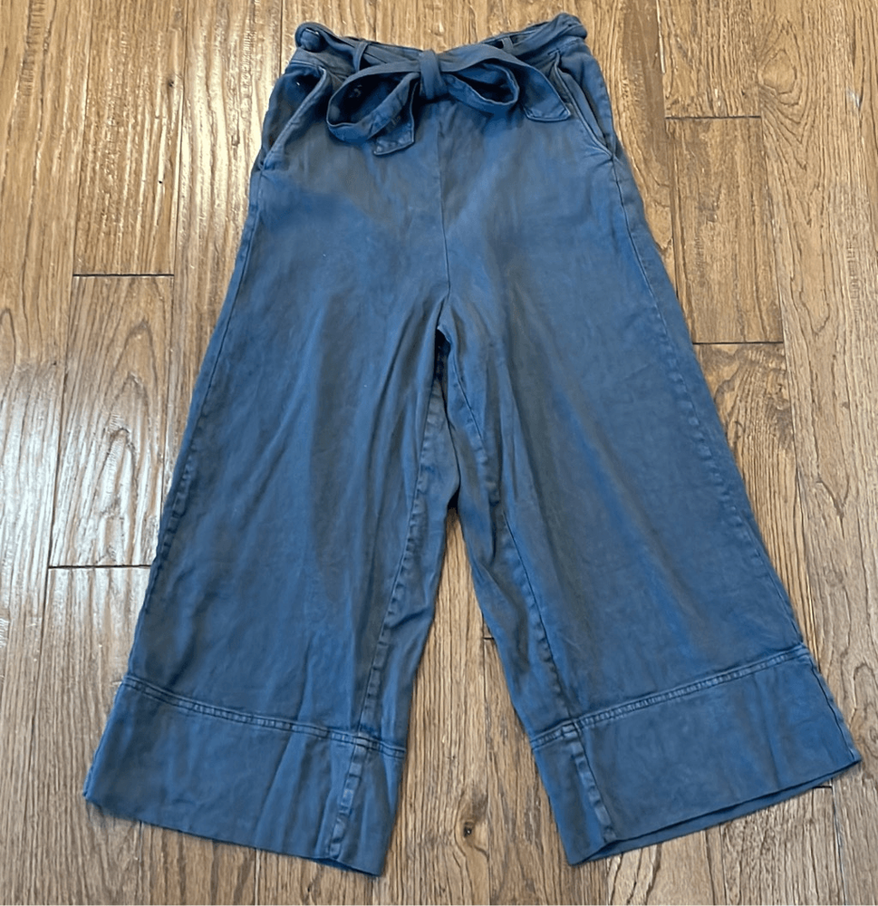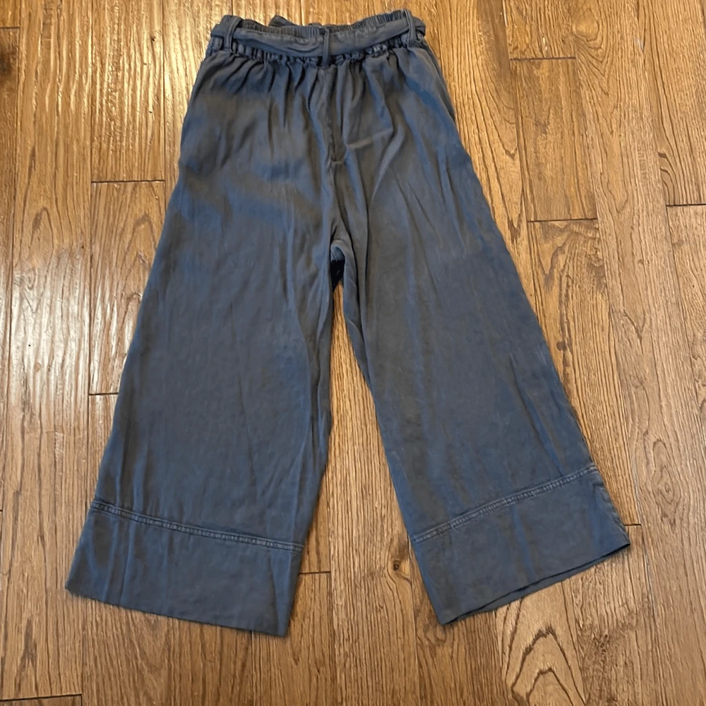 Brand: Splendid Description: Linen wide leg tie waist crop pant Size: small Color: greyish brown Condition: Gently Worn Very Good 👍🏻 Measurements: Waist: 13” Rise: 12” Inseam: 21” **Bundle and Save!!** all measurements are approximate and taken laying down A42
