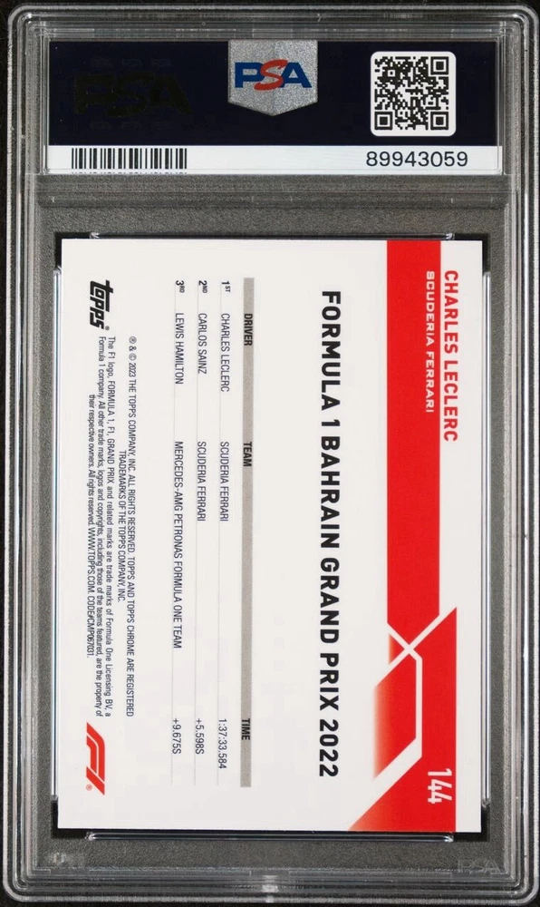 Sport: Auto Racing Manufacturer: Topps Grade: 10 Team: Scuderia Ferrari League: Formula 1 Professional Grader: Professional Sports Authenticator (PSA) Year Manufactured: 2024 Set: 2023 Topps Chrome Formula 1 Certification Number: 89943059 Player/Athlete: Charles Leclerc Card Number: 144 Features: Parallel/Variety Parallel/Variety: Gold Checker Type: Sports Trading Card Season: 2023