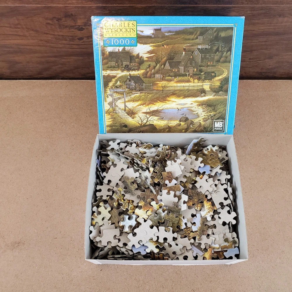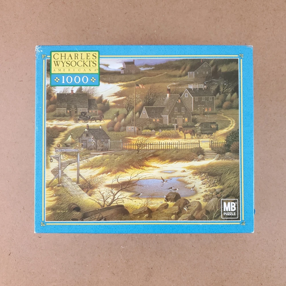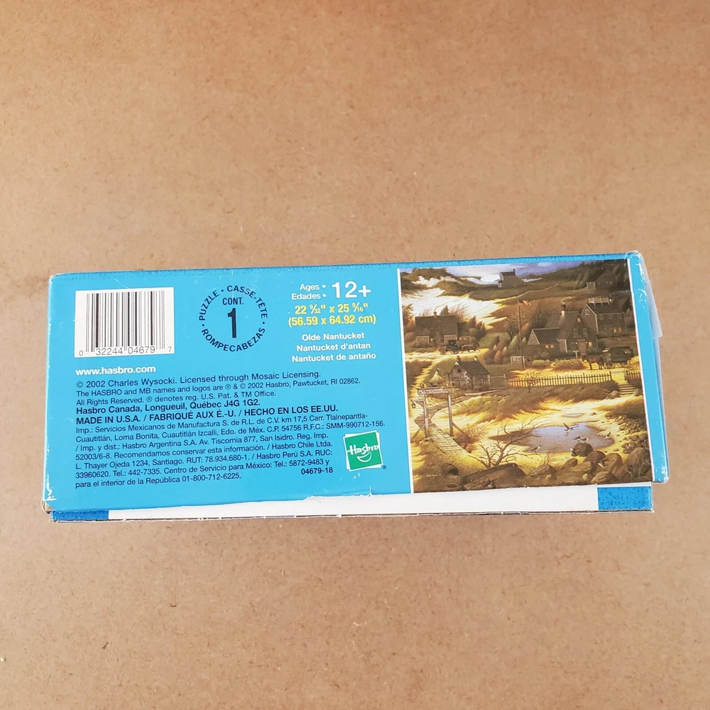 Charles Wysocki Olde Nantucket 1000 PC Puzzle Used Complete Hasbro MB HTF 2002 Used ~ Complete. Box has a sticker and some minor wear. Please view the photos carefully for condition details. Don't forget to check out the other items in my shop. I'm getting in new fun things all the time. Thank you for looking! Have a great day!