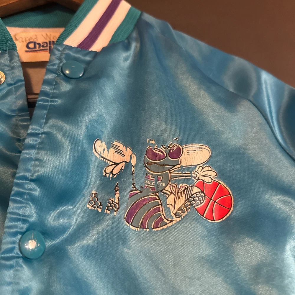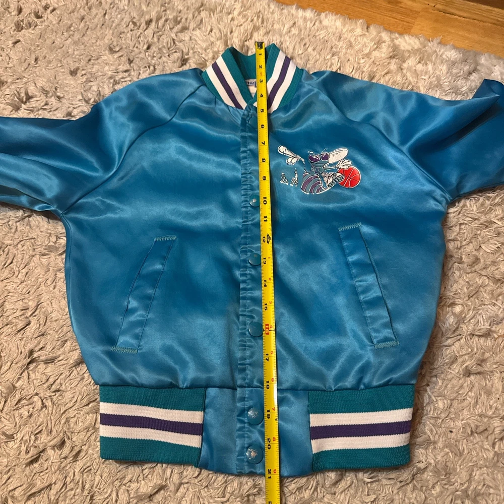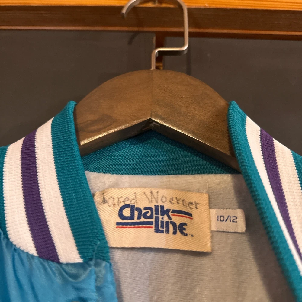 Charlotte Hornets Chalk line Satin Jacket Boys Youth 10-12 Large Spellout 80s 90s Beautiful Rare Jacket Used Condition Some Wear Shown on Jacket Hard to Find Kids Jacket Size 10-12 Measurements in photos #charlottehornets #hornets #nba