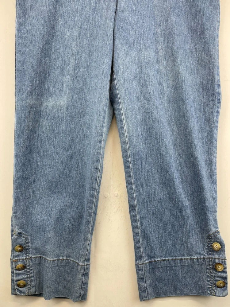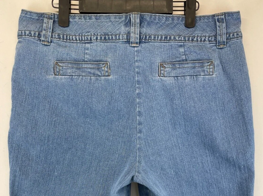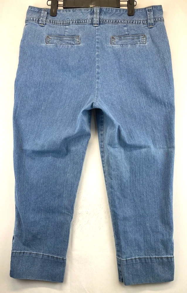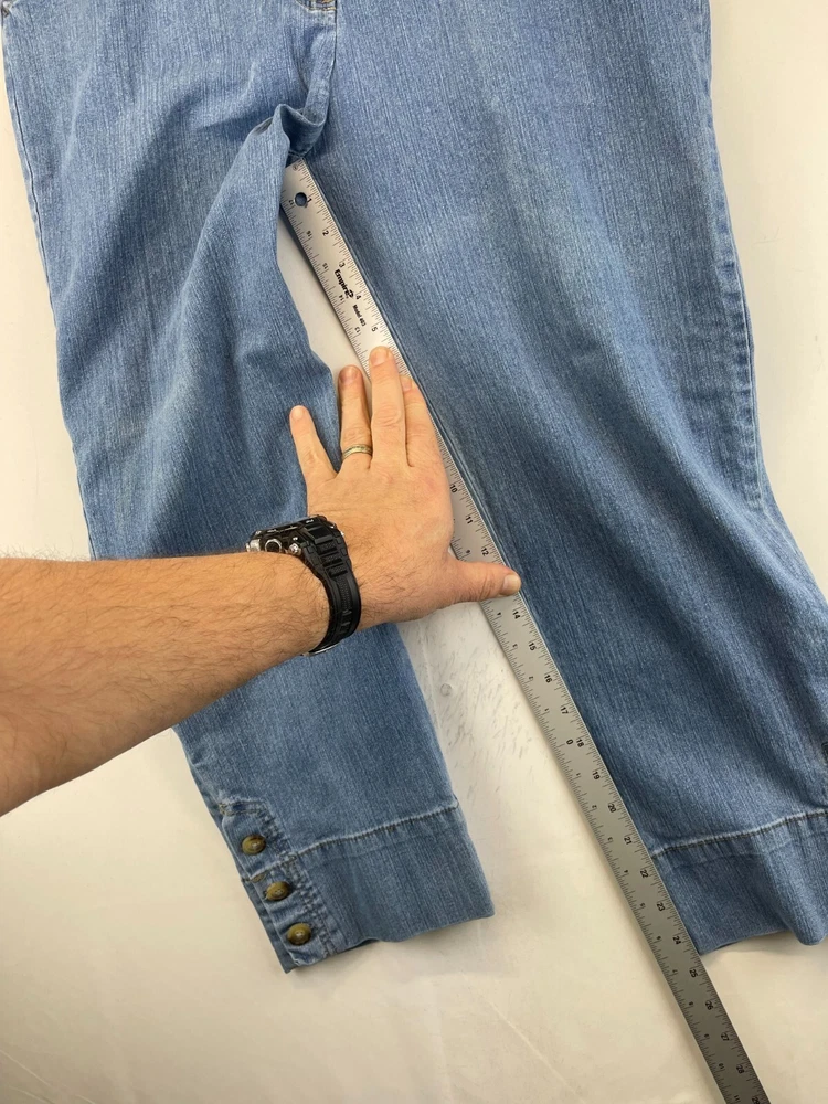 Elevate your summer wardrobe with these stylish Charter Club capri pants. Made with a blend of polyester, spandex, and cotton denim, these pants are perfect for any occasion, whether it's a casual day out or a party/cocktail event. The pants feature a flat front and a straight leg style with a high rise of greater than 10.5 inches, providing a comfortable and flattering fit for women's size 14. The pants also come with a variety of features, including stretch for added comfort, and can be easily cared for with machine washable instructions. The solid blue color and bohemian/hipster theme make these pants a great addition to any fashion-forward wardrobe. See photos for measurements of the waist size and make these pants a must-have for any summer, fall, or spring season. Very good preowned condition with normal preowned wear and no issues. Please see all photos. For clothing specifically, see photos for all measurements and/or any issues if applicable. Pay close attention to the measurements as the size of the garment may quite possibly be different than the actual measurement(s) due to washing, shrinkage, or stretching as these are used clothes. The size in the title is the size on the tag of the garment. See photos for measurements of actual measurements as they may differ. ALWAYS CHECK THE MEASUREMENTS IN THE PHOTOS. This will remove any questions on measurements as well as always cover the possibility of human error in the listing(s) in the case of a typo or oversight. All clothing and shoes have been washed/cleaned, and comes from a smoke free environment. If shoe trees appear in the photos, they are for photography purposes only to illustrate how the shoes look filled out, and are not included. I am available for questions. I accept or negotiate reasonable offers. Have an amazing day. Thank you.