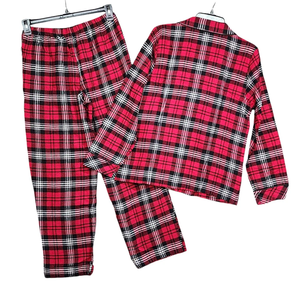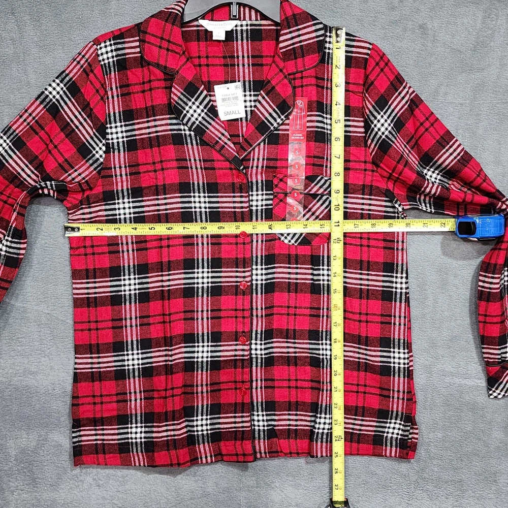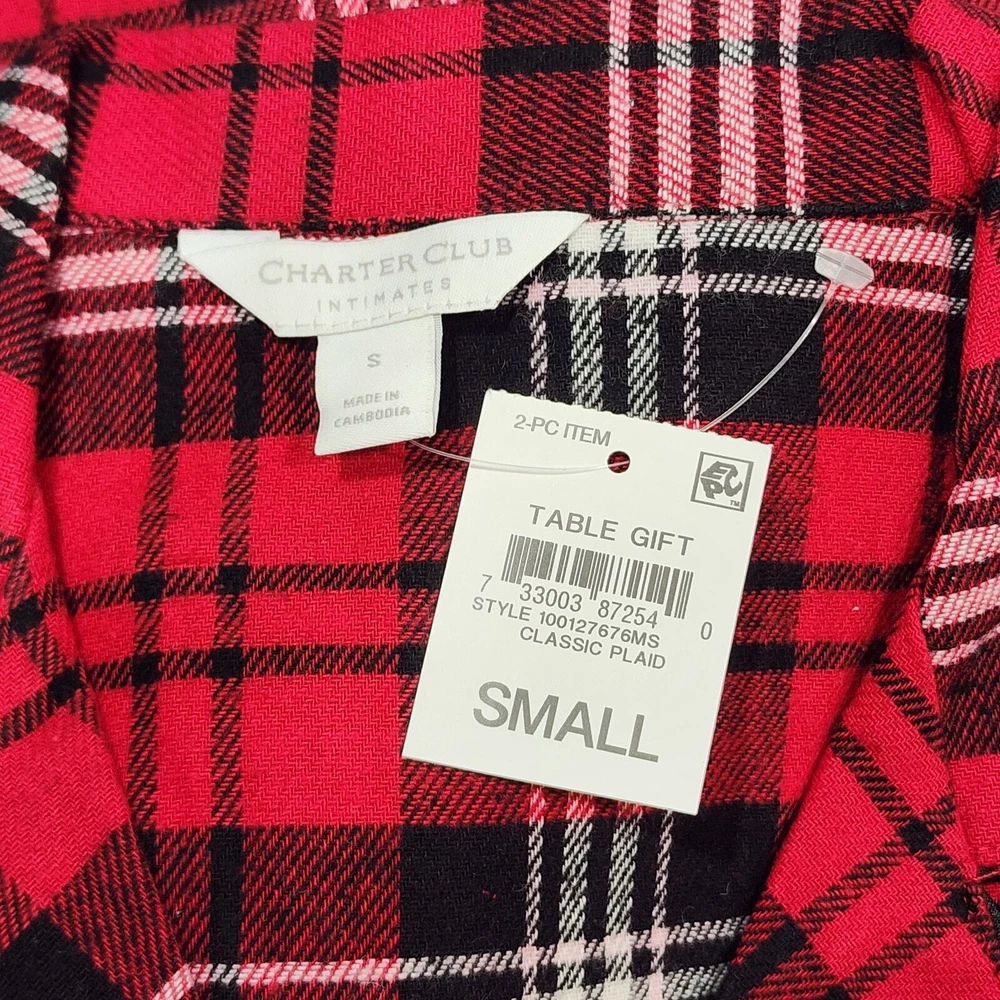 Charter Club Flannel Pajama Set Cotton Classic Red Plaid Size Small soft warm flannel bottoms have an elastic waistband long sleeve top has a notched collar V-neck and a button front closure New with tags. Defects: Paper hang tag may be torn or have tape or stickers attached/detached Inv# 11-018