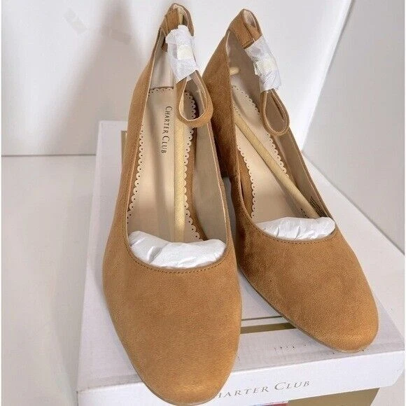 Details Slim ankle-strapping accents the trim silhouette of Charter Club's Francina pumps to add a delicate dimension to handsome tailoring. 2-3/4" block heel Almond-toe pumps with adjustable buckle at ankle-strap Upper: suede; lining: polyurethane; sole: man-made Spot clean Imported Listing and template services provided by inkFrog