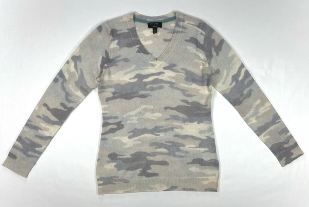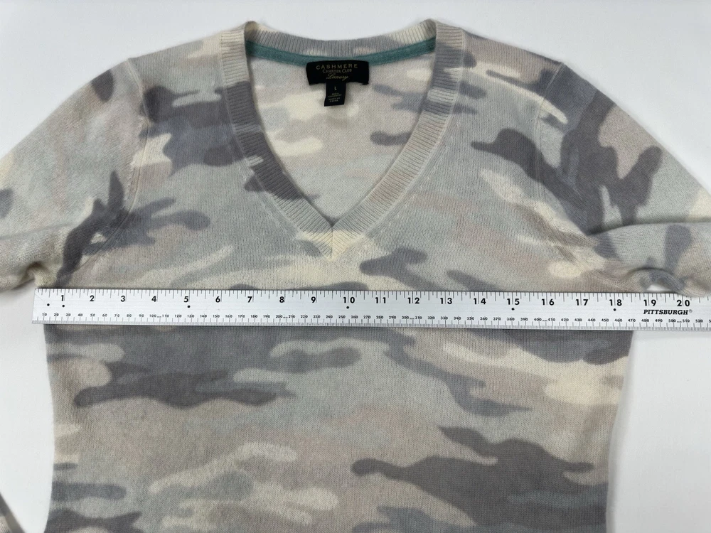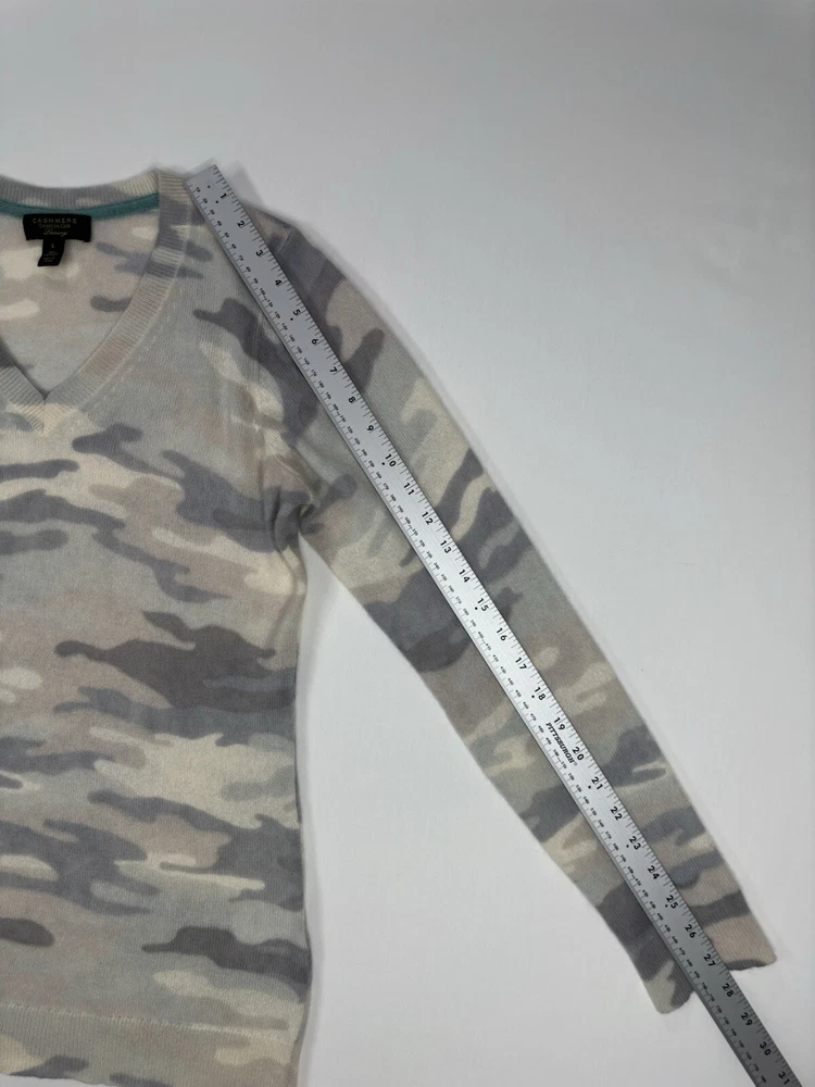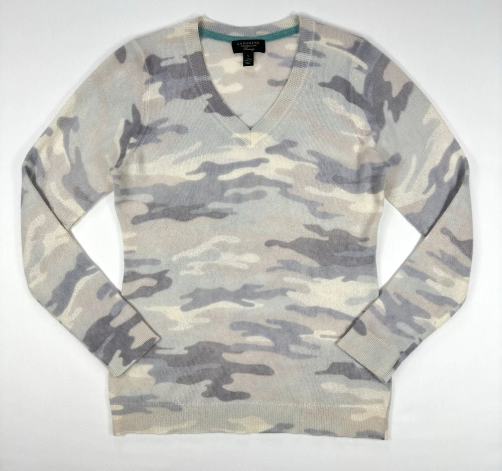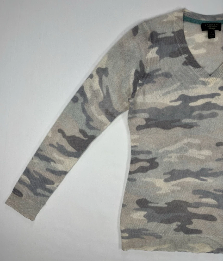 Charter Club Luxury 100% Cashmere Light Grey Camouflage Vneck Large • Size: Large • Condition: VERY GOOD - Previously worn, with only minor visible flaws and/or minor wash and wear. All seams are firm. Moderate fuzz formation or pilling possible. • Item Specifics: Small stain on back trim. See photos with blue circle outlining the stain. • Color: Light grey tones *Due to photographic lighting sources and inconsistencies in various monitor settings, we cannot guarantee that the color you see accurately portrays the true color of the product. Furthermore, every individual may see these colors differently. Please view the 1st image for a more accurate image of the item's color.* Make an Offer and Save! We believe in fair pricing and want you to get the best value. If you’re interested, simply submit your offer and we’ll consider it. It’s a great chance to snag this product at a price that works for you. Send us your offer now!