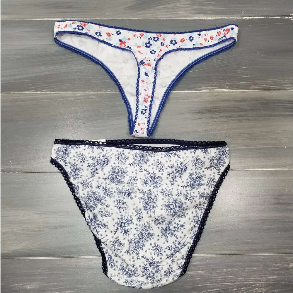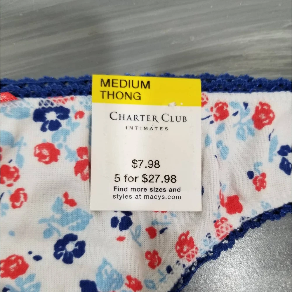Charter Club 1 Thong, 1 Bikini, Size Medium Bikini 100% Cotton, Color: Angel White Thong 100% Cotton, Color: Blooming Flora New with tags. Paper hang tag may be torn or have tape or stickers attached/detached Inv: G208