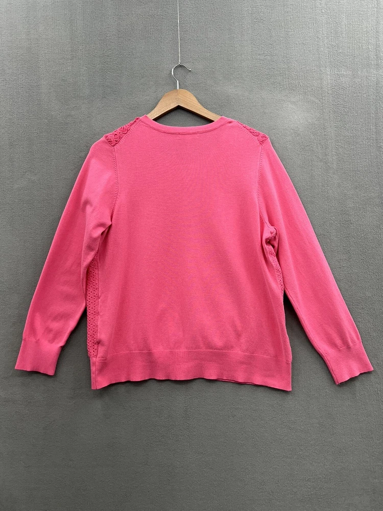 Elevate your wardrobe with this beautiful Charter Club cardigan in a lovely shade of pink. The sweater features a delicate floral lace overlay on a tight-knit design, giving it a sophisticated yet feminine look. With long sleeves and a round neckline, it is perfect for any occasion, be it casual or business. Crafted from a blend of polyester and rayon, this sweater is machine washable and easy to care for. The stretchy fabric ensures a comfortable and regular fit for plus-size women. Ideal for winter, fall, and spring, this sweater is a must-have for any fashion-forward woman.