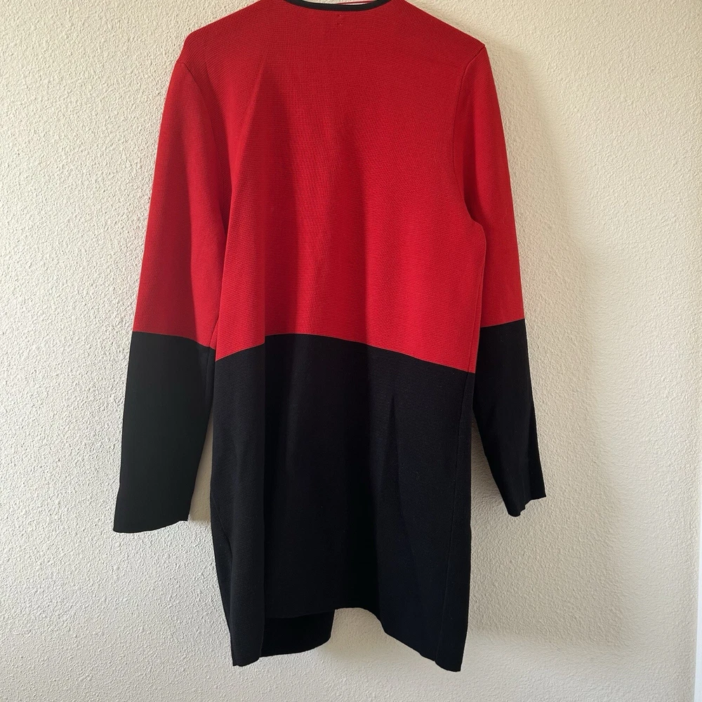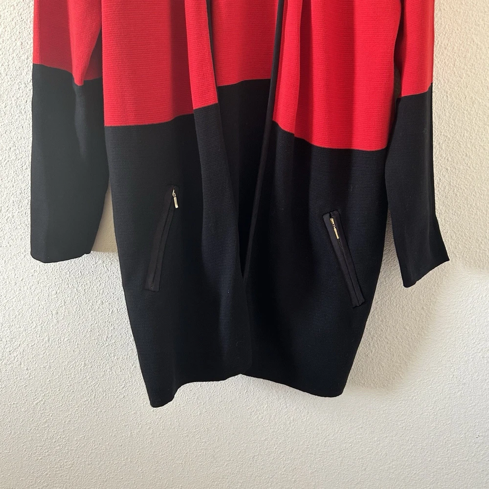 Charter club Women’s Longline Cardigan XL Red Black Dressy Church Work Office in great condition/ stretchy/ zip pockets / color lock red and black 21” across pits 33” length 31” sleeve from neck Approximate measurements All final sale #90 Dressy church work office business career wear teacher party Holiday Christmas party