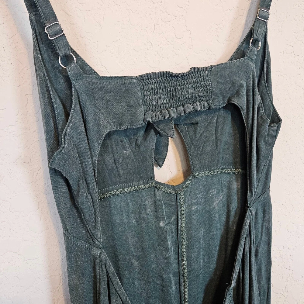 Chaser Green Open Back Spaghetti Strap Maxi Dress Spaghetti strap Adjustable strap Ties between the bust Cutout in the front A little bit of smocking at the back Open Back Slight high low hem Mineral wash Viscose Spandex Size S Small Approximate Measurements: pit to pit - 14.5" across waist - 13" hips - 17" length - 57 - 59" New with tags, no flaws. Smoke free, dog friendly home. classy trendy spring summer vacation weekend day off moss earth tone boho chic festival