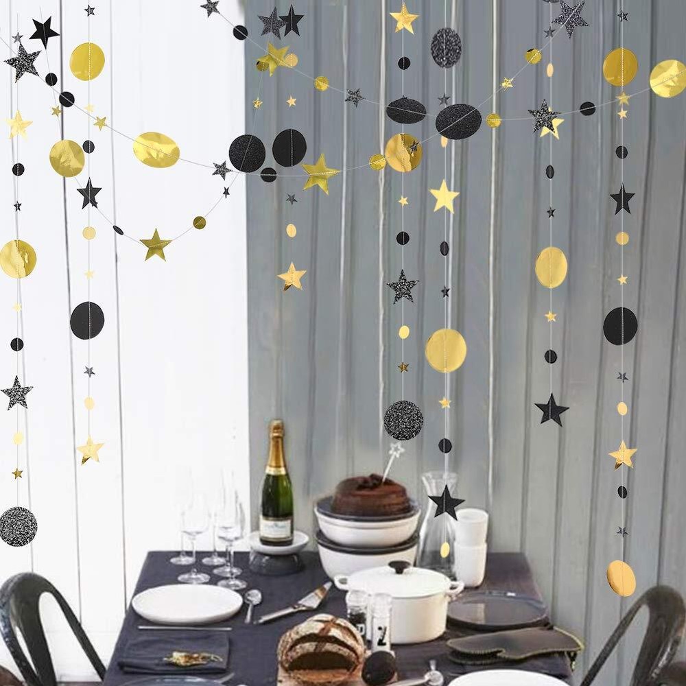 Cheerland Black Gold Party Decorations Moon Star Garland Hanging Stars Circle Streamer Banner Backdrop Decor Birthday Bachelorette Bridal Shower NYE New Year EID Ramadan Graduation Party Supplies 3 Packs Glitter Shining Black Gold Star Party Garland Kit: 鈥揑ncludes 3 strings of 13 feet glittering and shiny black gold star and moon circle garlands. Totally 39 ft. The biggest paper circle is 3.5 inches in diameter. 鈥揗ade with High quality card paper, not easy to bend, sturdy string and long-lasting color and coating. Unravel with care to avoid product tangle. 鈥揊its most events and occasions. Easy to use at home office, classroom or party. NO DIY needed. 鈥揈nvironmental friendly. Easy to remove and store for future reuse. Fits Multiple Occasions: - Wedding Engagement Decoration - Bridal Shower Bachelorette Hen Party Decoration - Graduation Party Decoration - Retirement Party Decoration - Bday/Birthday Decoration - Sweet 16 Decoration - Christening Decoration - Anniversary Decoration, Esp. Golden Jubilee - Christmas New Year Decoration - Ramadan, Hari Raya and EID Deoration - Other Black Gold Theme Party Decorations 馃憤路Package Includes: 3 strings of 13 feet glittering and shiny black gold star and moon circle garlands. Totally 39 ft. The biggest paper circle is 3.5 inches in diameter. 馃憤路Black Gold Party Decorations: The black and gold stars and moons streamer made of glitter and shining card paper sway in the breeze and reflect light from all angles. These garlands are gorgeous party decorations to create a elegant and classy atmosphere at home or any festive event. 馃憤 路Brilliant Decor for Most Occasions: These garlands are perfect decorations for most parties and celebrations such as wedding, engagement, bachelorette, bridal shower, baby shower, christening, birthday/Bday, sweet 16, graduation, retirement, Christmas and NYE New Year Eve, space themed parties, galaxy themed, proms, homecoming, fantasy themed, halloween, masquerade, galactic themed party, star wars party. They are also good ornaments for Islamic celebrations for Ramadan, Hari Raya and EID. 馃憤 Easy to Use: NO DIY needed. Unravel the strings with care to avoid tangling. Just hang them or stick them on wall, window, furniture, from ceiling or as background, backdrop of photo booth. Easy to remove and store for future reuse. 馃憤 Quality Guarantee: High quality card paper, not easy to bend, sturdy string and long-lasting color and coating. Shipping from the USA All of our products are shipped from the USA, ensuring quick delivery to your destination. Payment We offer the following payment methods: PayPal, credit card, bank transfer, and eBay's secure payment system. Free Shipping & Free Returns Shipping within the USA is FREE. Additionally, any return is absolutely free for you. Risk-Free Purchase You have the option to return an item within 30 days without any justification. We cover the return shipping costs! Fast Shipping We ship immediately upon receipt of payment. Generally, the package is delivered within 2-3 days in the USA. If it takes longer, we will contact you. Quality and Costs Made in Europe, USA, China No customs fees or additional charges Total satisfaction guarantee Invoice with declared VAT available upon request in .pdf format Feedback Your feedback is very important to us. After you pay for your purchase, you will automatically receive positive feedback from us.