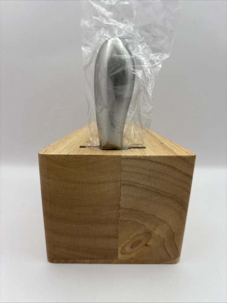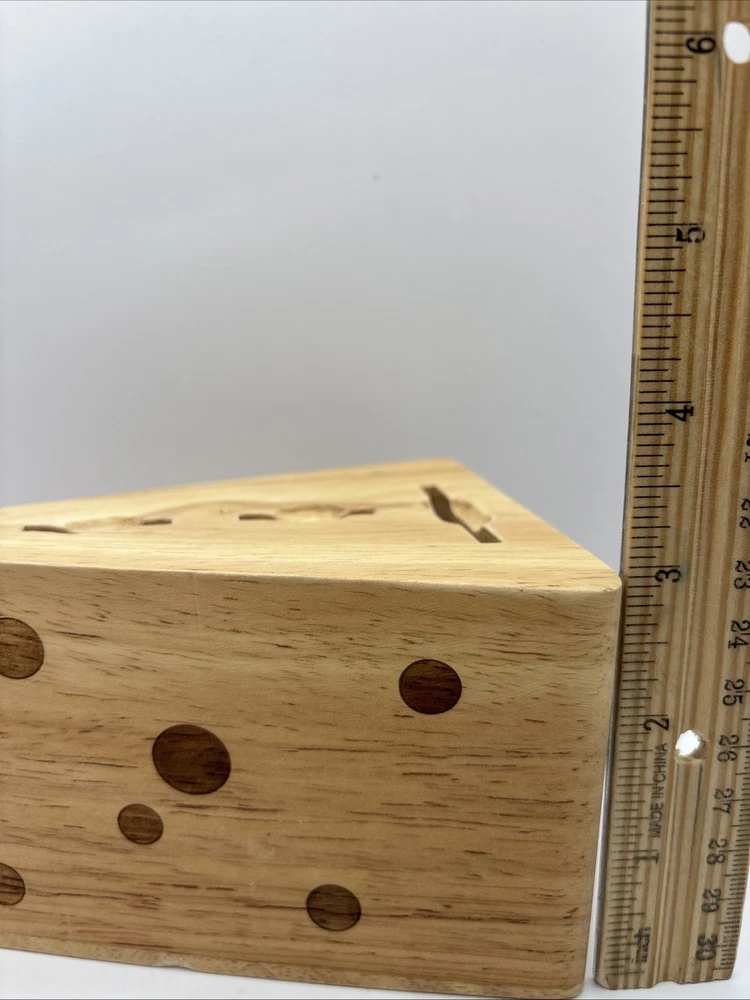 This is a wood block in the shape of a wedge of Swiss cheese with 3 cheese serving utensils. Items appear to be unused. Set includes 1 wood block along with 3 utensils.