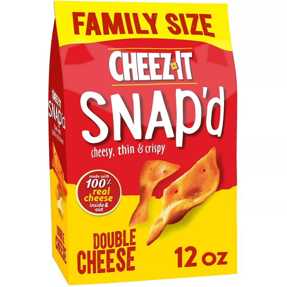 Satisfy your cravings with Cheez-It Snap'd Double Cheese Cracker Chips, offering a perfect blend of crunchy and cheesy. Each 12 oz bag is filled with thin crisps that are ideal for satisfying your hunger between meals or adding a savory touch to your favorite beverages. The classic cheese flavor ensures a delicious experience with every bite. Crafted in the United States, these snacks are a pantry staple for any snack lover. With a serving size of 100 grams, it's easy to enjoy a guilt-free snack that's both satisfying and delicious. Whether you're looking for a quick snack or something to share with friends, Cheez-It Snap'd chips are the answer.