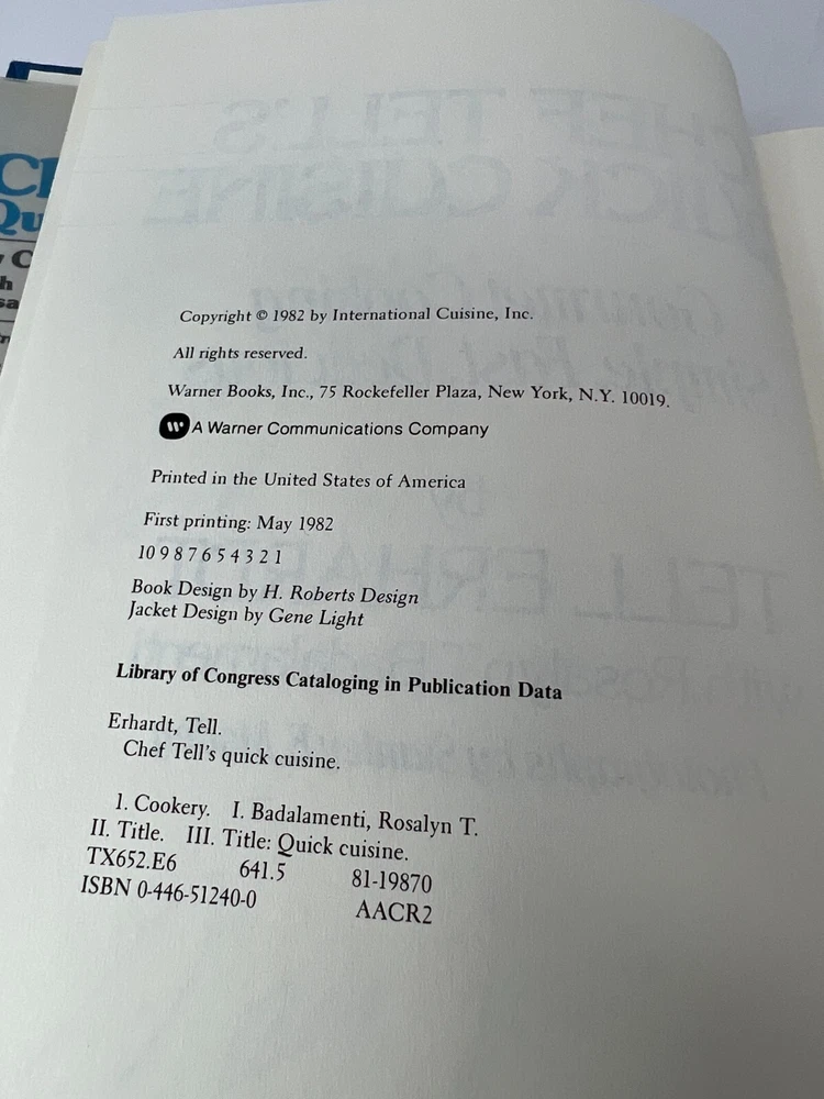 Chef Tell's Quick Cuisine Signed 1st Edition 1982 Gourmet Cooking Hardcover w/Dust Jacket and Plastic Cover. Excellent condition. Dust jacket has plastic book cover for extra protection. Product Condition PRODUCT CONDITION: We sell vintage, overstocks, returns, shelf-pulls and new items. Items could have dents, shelf wear, torn and not in the greatest condition. In no way does this effect the product itself. If we think a product is unsafe or used, we will not list it. We inspect carefully and will describe the condition as best as we can. Any problems, please contact us immediately so we can rectify the problem. Shipping Shipped within 1 Business Day. All orders are processed and shipped out within 1 Business Day. All orders received on Saturday and Sunday will be shipped out Monday. Returns 30 Day Return Policy on most items. We will gladly accept returns. Item(s) must be returned in original, unused condition within 30 days with original tags/packaging. Cancellation Policy If you wish to cancel the order, please open a cancellation request. If the order has not already been processed, the order will be cancelled and a full refund will be applied. Please do not message to request for cancellation, as we might not be able to address all messages in timely manner. Incorrect Shipping Address It is Buyers responsibility to ensure that the shipping address provided is correct.