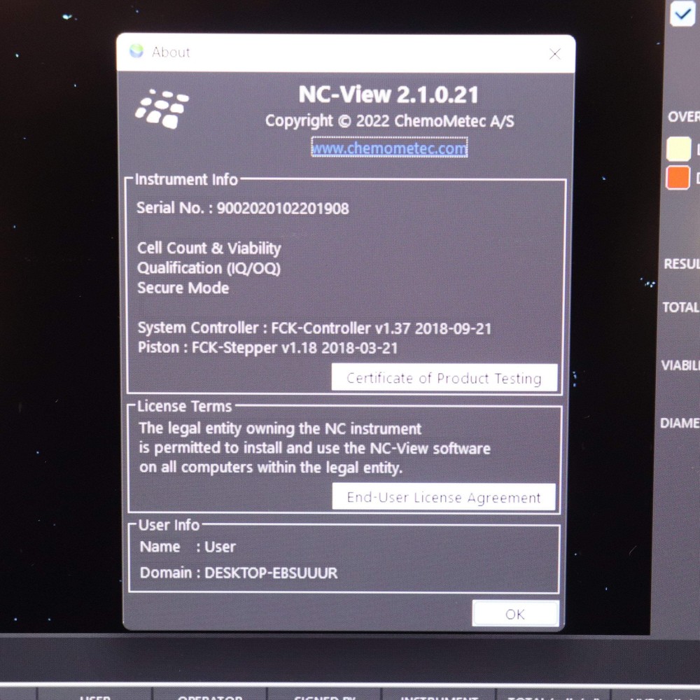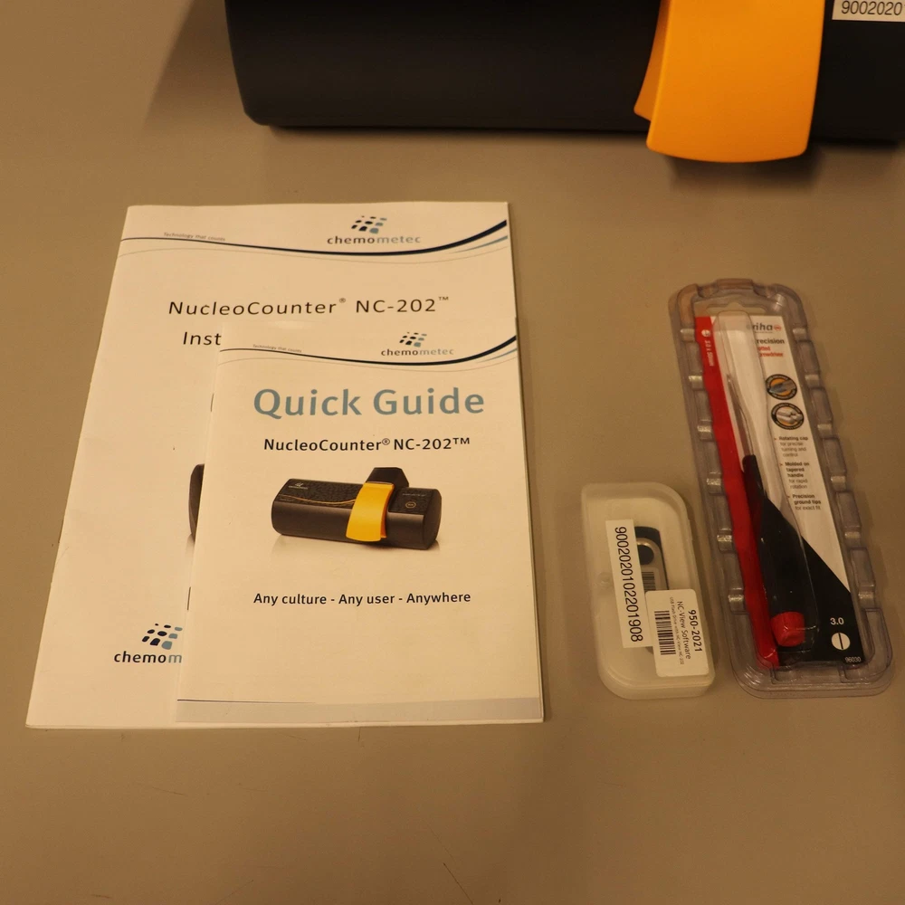 ChemoMetec NucleoCounter NC-202 Automated Cell Counter 900-2020 21 CFR 11 ChemoMetec NucleoCounter Automated Cell Counter NC-202 w/ Secure mode license for 21 CFR 11 Compliance PN: 900-2020Model: NC-202Mfg Year: 2022Country of Manufacture: DenmarkPower: 24VDC, 50W Max Includes: NC-202 Instrument NC-202 AC Power Adapter NC-202 Laptop Stand Device Interface Cable, USB-A 3.xx Type Nucleo-View Software for NC-202, v2.1.0.21 Secure Mode License for 21 CFR Part 11 compliance or GMP use Qualification (IQ/OQ) Cell Count & Viability License Aggregated Calls Blood Insect Cells Microcarriers PBMC See images for details USB Drive w/License and Software Installer Laptop w/ NC-202 Nucleo-View Software Installed Lenovo X13 Gen 1 Lenovo AC Power Adapter i5-10310U @ 1.7GHz 256GB M.2 SSD 16GB RAM 1920x1200 Display w/ Touch Windows 11 Home 10.0.22631 Instrument User Guide Manual Quick Guide Device Interface Cable Screwdriver Condition: Used, tested with Via-2 cassettes, in good working condition. Description: The NucleoCounter® NC-202™ automated cell counter is the most precise on the market. It is used in a wide range of industry and research applications and is our 3rd generation automated cell counter with improved functionality. Our cassette-based instrument features upgraded hardware and new NC-Vies software. The combined inter-operator and inter-instrument variation is extremely low. This means you get identical results with any cell sample, recorded by any user, anywhere in the world. The DebrisIndex™ feature measures culture debris build-up. Debris negatively affects downstream filtering and purifications steps, so directly measuring debris facilitates better process development parameters. The NC-View™ software is compatible with 21 CFR Part 11/ GMP guidelines and can be integrated into your clinical workflow. The disposable Via-2 Casette combined with the NucleoCounter® NC-202™ automated cell counter create a closed cell counting system, helping you stay protected when handling samples. No pipettes, no exposure to (toxic) reagents, and minimal clean-up make the NucleoCounter® system a safe option. WORLDWIDE SHIPPING AVAILABLE ChemoMetec NucleoCounter NC-202 Automated Cell Counter 900-2020 21 CFR 11 ChemoMetec NucleoCounter Automated Cell Counter NC-202 w/ Secure mode license for 21 CFR 11 Compliance PN: 900-2020 Model: NC-202 Mfg Year: 2022 Country of Manufacture: Denmark Power: 24VDC, 50W Max Includes: NC-202 Instrument NC-202 AC Power Adapter NC-202 Laptop Stand Device Interface Cable, USB-A 3.xx Type Nucleo-View Software for NC-202, v2.1.0.21 Secure Mode License for 21 CFR Part 11 compliance or GMP use Qualification (IQ/OQ) Cell Count & Viability License Aggregated Calls Blood Insect Cells Microcarriers PBMC See images for details USB Drive w/License and Software Installer Laptop w/ NC-202 Nucleo-View Software Installed Lenovo X13 Gen 1 Lenovo AC Power Adapter i5-10310U @ 1.7GHz 256GB M.2 SSD 16GB RAM 1920x1200 Display w/ Touch Windows 11 Home 10.0.22631 Instrument User Guide Manual Quick Guide Device Interface Cable Screwdriver Condition : Uséd, tested with Via-2 cassettes, in good working condition. Description: The NucleoCounter® NC-202™ automated cell counter is the most precise on the market . It is uséd in a wide range of industry and research applications and is our 3rd generation automated cell counter with improved functionality. Our cassette-based instrument features upgraded hardware and new NC-Vies software. The combined inter-operator and inter-instrument variation is extremely low. This means you get identical results with any cell sample, recorded by any user, anywhere in the world. The DebrisIndex™ feature measures culture debris build-up. Debris negatively affects downstream filtering and purifications steps, so directly measuring debris facilitates better process development parameters. The NC-View™ software is compatible with 21 CFR Part 11/ GMP guidelines and can be integrated into your clinical workflow. The disposable Via-2 Casette combined with the NucleoCounter® NC-202™ automated cell counter create a closed cell counting system , helping you stay protected when handling samples. No pipettes, no exposure to (toxic) reagents, and minimal clean-up make the NucleoCounter® system a safe option. WORLDWIDE SHIPPING AVAILABLE × × × × × × × × × × × × × × Buy now and save! Shipping info Click the Shipping & Payments tab above the listing description for more info Click the Shipping & Payments tab above the listing description for more info! Additional delivery notes PICK UP OPTION Sorry, our items are NOT available for pick-up. PAYMENT Immediate payment is required upon selecting "Buy It Now" or upon checking out through the cart. We accept payment via U.S. PayPal accounts and all Major Credit Cards, Debit Cards & Google Pay. We are legally required to collect sales tax in those states and localities where we maintain a physical presence (nexus). The applicable amount of sales tax charged to an order will be calculated based on the shipment destination's state and local sales tax laws. Thank you for shopping with us on eBay! Additional Information No additional information at this time Ask seller a question You might also like Dr. Schleuniger Pharmatron 8M Mechanical Tablet 20kp Lot of (32) Peer 3/8" Bore Radial Shielded Ball Bearings 1604-ZZ 1604ZZ Lot of (5) NEW 2" Casters with Bearing A1101-26-00 Thermo Scientific Abgene 96-Well Sealing Mats Round Cap Piercable AB-0566 Contact To contact our Customer Service Team, simply click the button here and our Customer Service team will be happy to assist. Ask seller a question © Arnett Supply Shipping & Payments Click the Shipping & Payments tab above the listing description for more info Payment Accepted Payment Methods Immediate payment is required upon selecting "Buy It Now" or upon checking out through the cart. We accept payment via U.S. PayPal accounts and all Major Credit Cards, Debit Card
