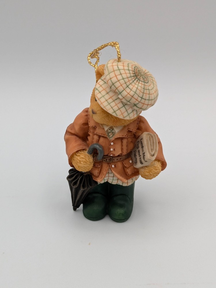 This adorable Cherished Teddies English Boy hanging ornament from 1998 is the perfect addition to any collection. Pre-owned and in excellent condition, it comes with the original box, which shows wear due to age. A charming vintage piece to celebrate the holiday season or add to your Cherished Teddies collection. We ship within one business day! This item comes from a smoke-free and dog-free home. Our items are carefully packed to guarantee their safe arrival to you. #cherishedteddies #cherishedteddiesfigurine #englishboy #ornament #holidaycollectible #vintagechristmas #christmaskeepsake #cbtreasures