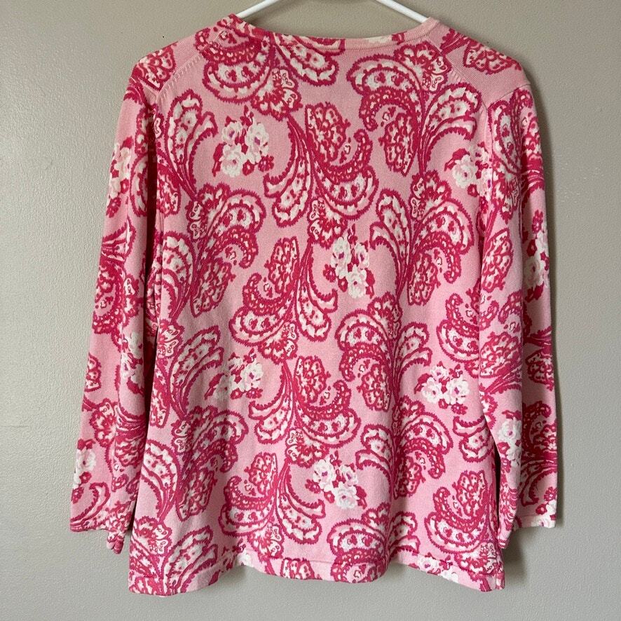 Cherokee Cotton Paisley Floral Cardigan Sweater Button Front Preppy Workwear L Size: LARGE Approx. measurements: 20" across (pit to pit), 23" long (shoulder to hem) Condition: Pre-loved and in gently used condition. Light wear. no stains, rips, or holes. - see all pics for any wear/condition Actual colors may vary. We do our best to ensure that our photos are as true to color as possible. However, due to photographic lighting sources, inconsistencies of various monitors settings, we cannot guarantee that the color you see accurately portrays the true color of the product. preppy, classic, casual, business casual, workwear, wear to work, chic, feminine, boho, cottage, cottagecore, grandma, grandmacore, academic, academia, light academia,