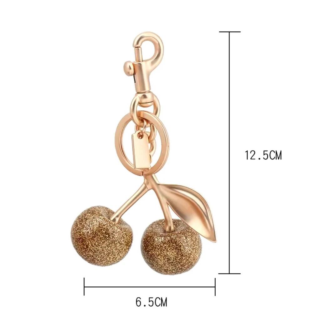 Add some charm to your keys with this delightful Cherry Bag Charm KeyChain. Made from glitter resin and metal, this keychain features a beautiful cherry design in gold color. It is perfect for women who love to add a touch of elegance to their daily routine. This keychain is perfect for those who love charmed items and want to add a unique touch to their collection. It is made of high-quality materials and is manufactured in China. Get your hands on this beautiful keychain and add a touch of glamour to your keys!