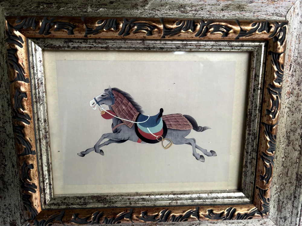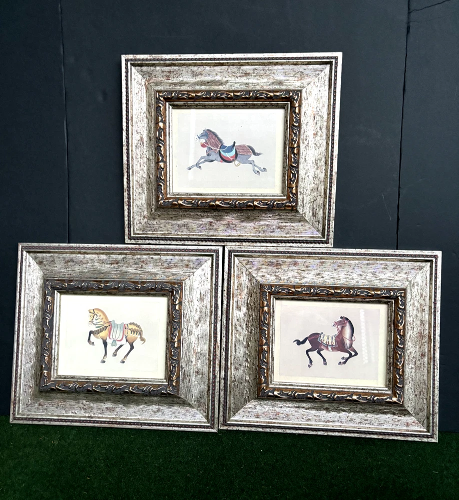 Cheval Dynastic Horses -Set of 3 Framed Prints by The Bombay Co Mint Condition❤️ Enhance your living space with this stunning set of three framed prints of the Cheval Dynastic Horses, made in the USA by The Bombay Company. These beautiful prints, featuring horses in various poses and sizes, are perfect for animal lovers and art enthusiasts alike. Crafted from high-quality paper, these original prints come without a certificate of authenticity (COA) and are not signed. Measuring small in size, they are ideal for any room in your home. The set includes prints with different themes and subjects, making it a great addition to your art collection.