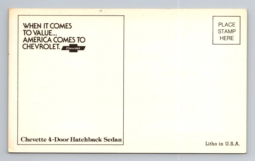 Chevette 4 Door Hatchback Sedan, Cars, Transportation, Antique Vintage Postcard