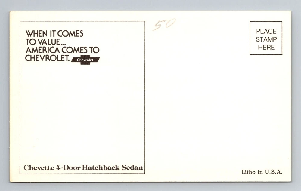 Chevette 4 Door Hatchback Sedan, Cars, Transportation, Antique Vintage Postcard