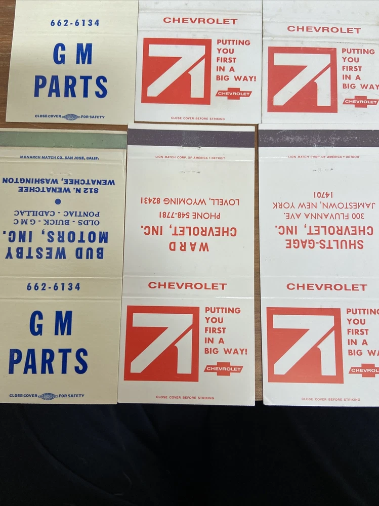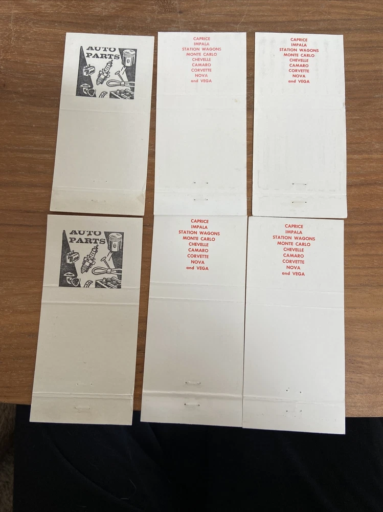 Chevrolet & GM Parts Vintage Matchbooks No Matches. These are in good condition. Come from a smoke free home. Please pay within 3 days of the auction ending. Thanks!