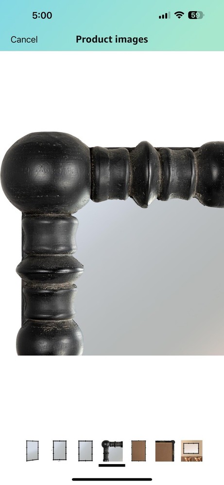 Creative Co-Op Chic Wood Beaded Dowel Frame Mirror, Black Top highlights Brand Creative Co-Op Room Type Living Room Shape Rectangular Product Dimensions 44"L x 30.75"W Frame Material Wood Style Farmhouse A captivating mirror framed by black wood beads on dowels, offering a blend of rustic charm and modern design A versatile decor piece, it complements cottagecore, farmhouse, lodge, and French country styles with its unique aesthetic A convenient hanging mechanism at the back allows for easy placement anywhere A composition of wood beads and dowels, this mirror brings a natural and handcrafted quality to any space 30.75" L x 44.0" H See less Product specifications Measurements
