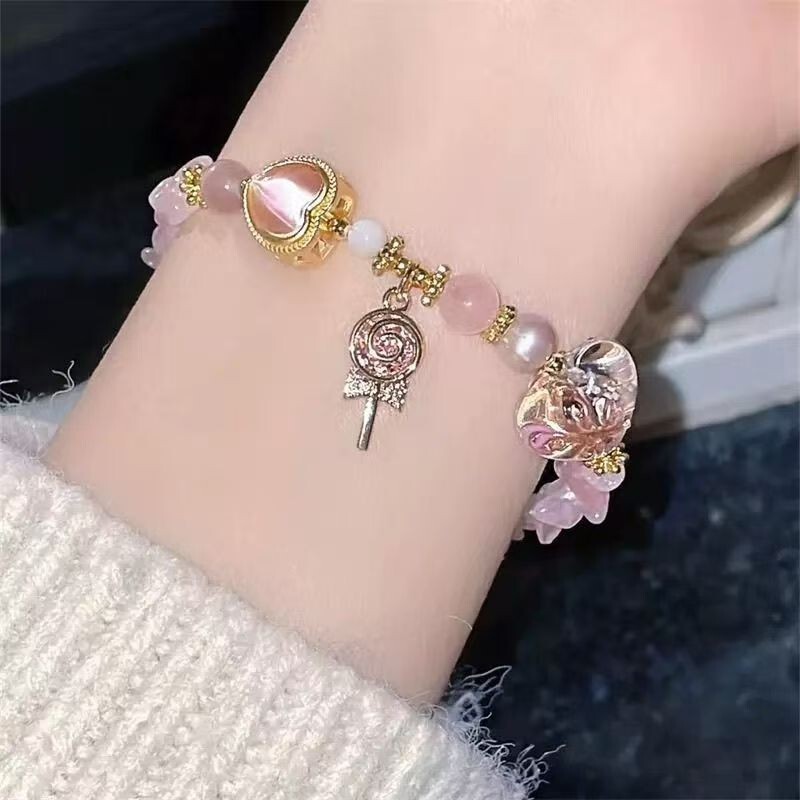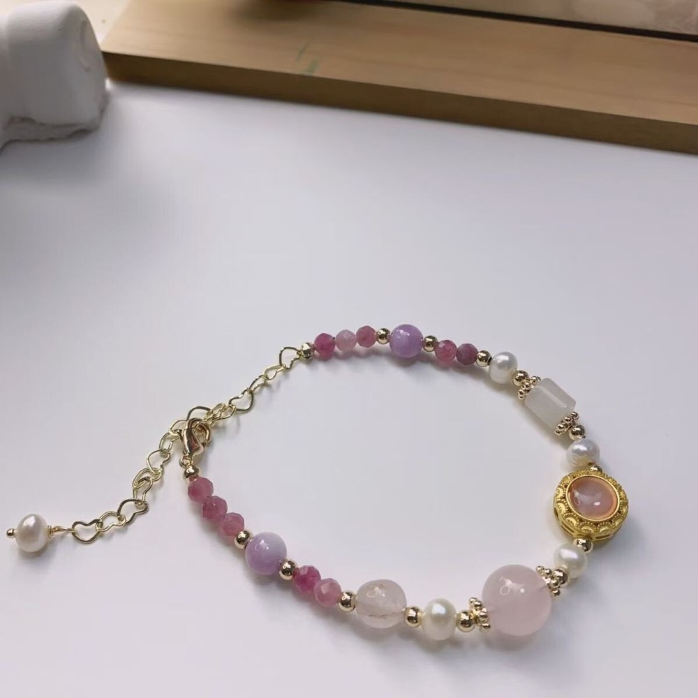 This is a vintage silver bracelet from China with a tassel style design. The bracelet features multicolor round stones, very good cut grade, and is sizable. It has a ball/bead chain and a sweet, charming aesthetic.