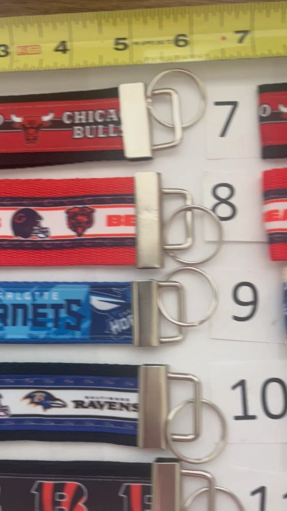 Show off your team spirit with this handmade, detachable keychain featuring the Charlotte Hornets, Cincinnati Bengals, Chicago Bulls, Baltimore Ravens, and Cincinnati. The multifunctional keychain is made of polypropylene fiber, grosgrain ribbon, and metal accents, and features a printed grosgrain ribbon pattern. This two-size keychain is perfect for any sports fan and is a great addition to any collection. Represent your favorite baseball, football, and college sports teams with this unique keychain. Whether you're a fan of the Charlotte Hornets, Cincinnati Bengals, Chicago Bulls, Baltimore Ravens, or Cincinnati, this keychain is a must-have accessory. Get yours today and show off your team spirit wherever you go!