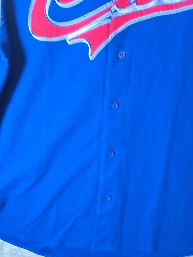 Show your support for the Chicago Cubs with this officially licensed Stitches jersey shirt. The blue shirt features the team's logo and is perfect for any fan. It is made of high-quality materials and has been designed to ensure maximum comfort. This shirt is perfect for men who love baseball and want to show their love for the Chicago Cubs. It is available in size X-Large and has a button-up closure. The shirt is made in Jersey and is perfect for anyone who loves sports memorabilia. Add this shirt to your collection today!