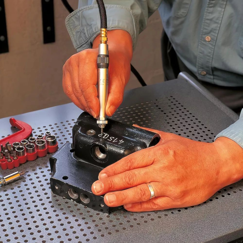 Chicago Pneumatic CP9361 - Engraving Pen Air Scribe, 1/8 Inch (3 mm), Hex Shank, Rolling Throttle, 13500 Blow Per Minute, Use with Stencils on Metal & Glass Technical Details Manufacturer Chicago Pneumatic Part Number T012644 Item Weight 4.9 ounces Product Dimensions 7.87 x 2.17 x 8.27 inches Country of Origin Hungary Item model number CP9361 Is Discontinued By Manufacturer No Size 1 Count (Pack of 1) Color Silver Style Tool Finish Clear Material Metal Power Source air-powered Item Package Quantity 1 Sound Level 79 dB Tool Tip Description Chisel Special Features Lightweight Included Components CP9361 Air Engraving Tool; Hose Batteries Included? No Batteries Required? No Warranty Description 1 year limited warranty Speed and Power: With a remarkable 13,500 blows per minute, this compact tool delivers swift and precise engraving on various surfaces, including metal, glass, and stone Ergonomics: Designed for operator comfort, the CP9361 is lightweight and easy to handle, ensuring fatigue-free use during extended tasks Safety: The CP9361's premium construction ensures durability, providing a reliable and safe engraving experience Applications: Versatile across materials, it's ideal for metalwork, plastics, ceramics, and glass, making it indispensable for artists, craftsmen, and hobbyists General Specifications: Weighing just 0.31 lbs, this 1/8 inch (3 mm) air scribe features a hex shank and is compatible with almost every surface, from glass to stone and metal Product Description The CP9361 is constructed of premium components making it easy to handle and comfortable to use. It's adjustable power makes it ideal for a variety of applications and materials including: metals, plastics, ceramics, and glass. From the Manufacturer The CP 9361 Industrial Engraving Pen is the Perfect Choice for Heavy Duty Engraving Applications Shipping We offer FREE shipping on all orders! We ship within Three business days of payment, usually sooner. We use a selection of shipping services such as UPS, FedEx, USPS etc. We only ship to the lower 48 states, no APO/FPO addresses or PO Boxes allowed. Local pickups and combined shipping options are not provided at this time. Return You can return a product for up to 30 days from the date you purchased it. Any product you return must be in the same condition you received it and in the original packaging. Please keep the receipt. Payment We accept payment by any of the following methods: PayPal Please pay as soon as possible after winning an auction, as that will allow us to post your item to you sooner! Feedback Customer satisfaction is very important to us. If you have any problem with your order, please contact us and we will do our best to make you satisfied. Contact Us If you have any queries, please contact us via ebay. We usually respond within 24 hours on weekdays. Please visit our eBay store to check out other items for sale! Thank you for shopping at our store.