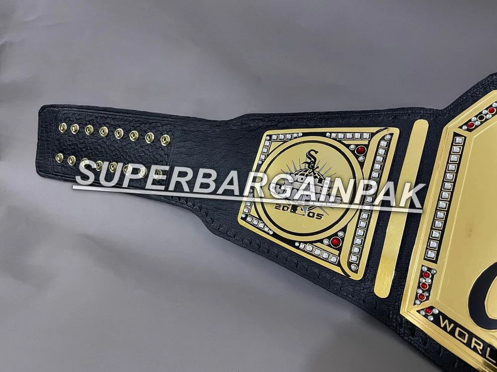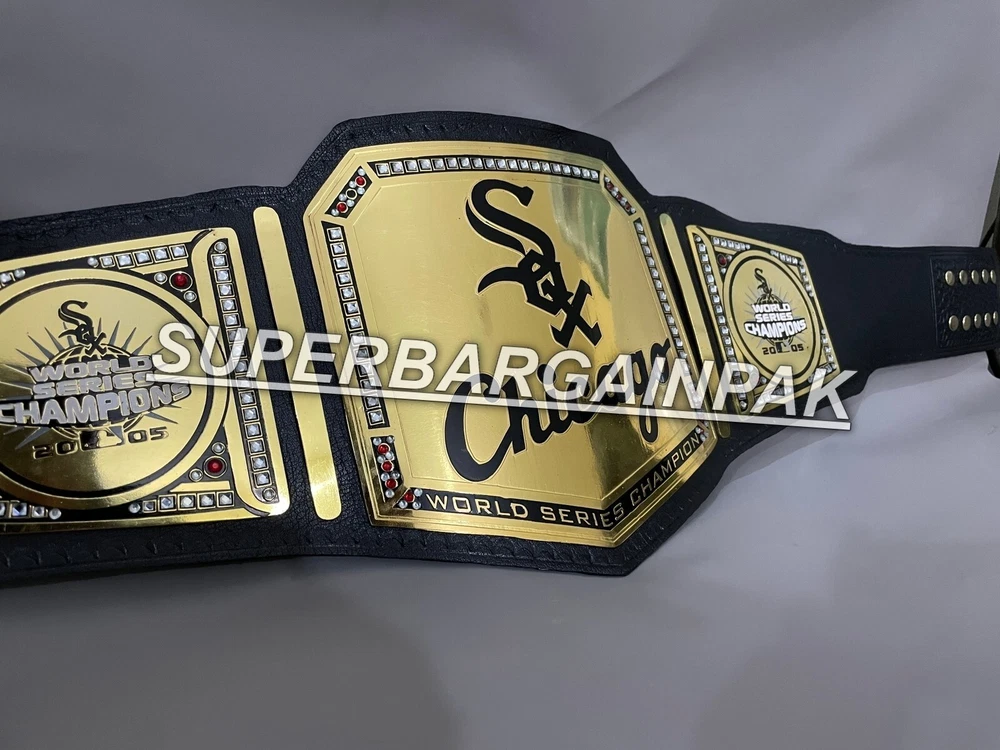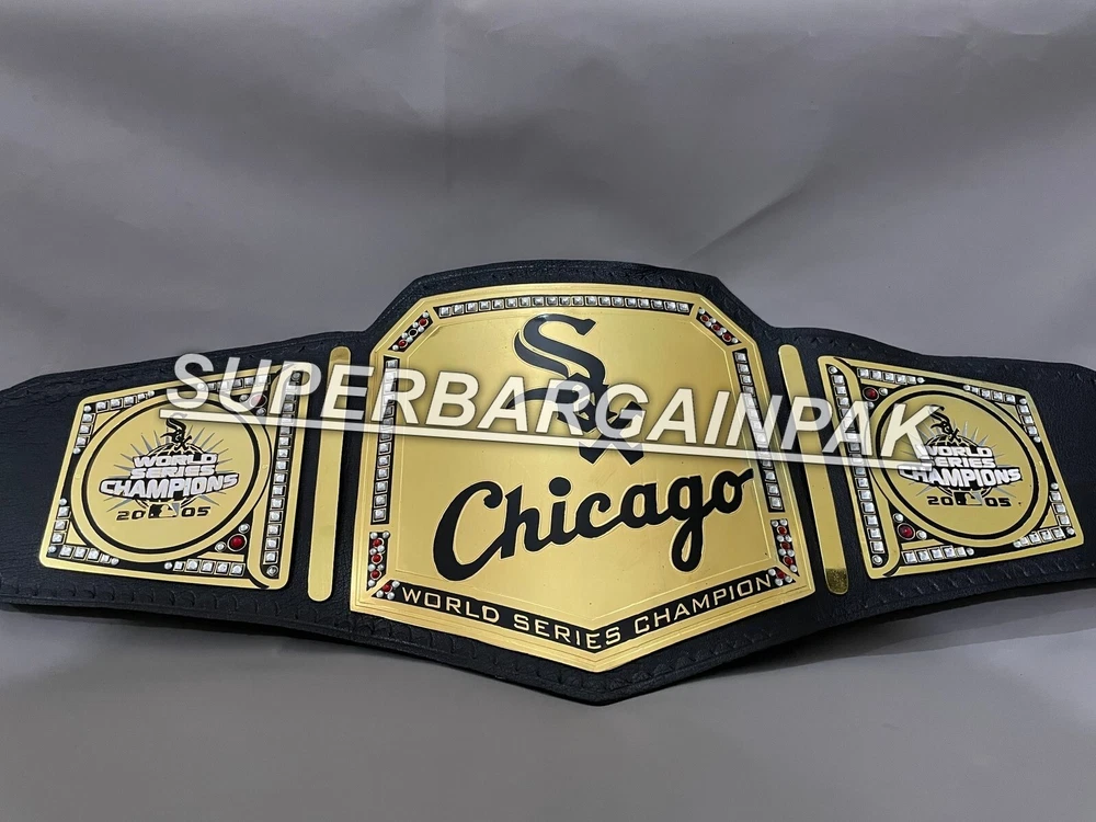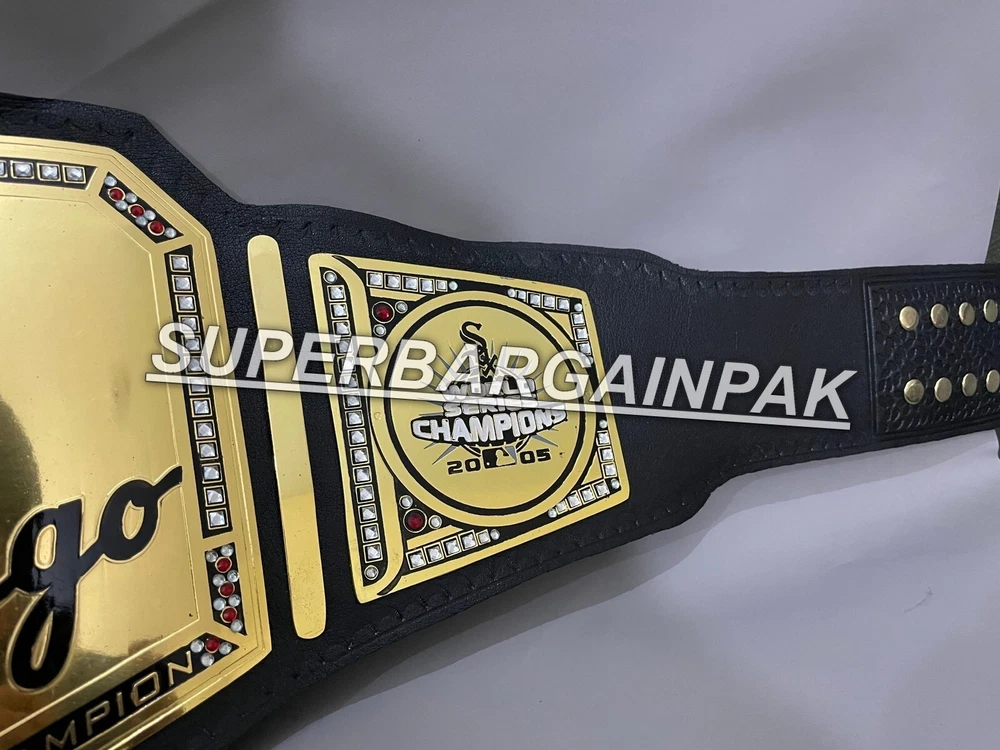 Welcome to our shop ------------------------------------------- We are specialist in manufacturing handmade products:: Our wide range of products include: >>>>Championship Belts WWE | WWF | AEW | UFC | WBC | WCW Product Description ** Chicago White Sox Championship Belt *** Plate Metal: Brass (Zinc available on request with additional cost) Strap: 100% Leather Largest Waist Size: Fits upto 46'' Belt Length: ~50" Weight: 3.17 lbs | 1.81 Kg Plate Thickness: 2mm (4mm Version available on demand with additional cost) ::The belt is well crafted and manufactured to meet the quality demands of fans:: Get your hands on this marvelous piece now! Note: If you need further details kindly inbox us, we will try to be as responsive as possible. ------------------------------------------- Return Policy: Generally we don't have much complains on our products and we make sure to 100% satisfy our clients. We send the product in well Bubble Wrapped packaging so there is highly unlike chance of getting damaged item. In case there is a damage, we will try to give partial refund or you can ask for full refund within 30 days after returning the belt to origin. NOTE: 1. If you have placed the order by mistake or you have purchased a wrong item then we are not going to refund that. 2. Buyer will pay the shipping fee of returning the belt. ------------------------------------------- Happy Shopping! :)