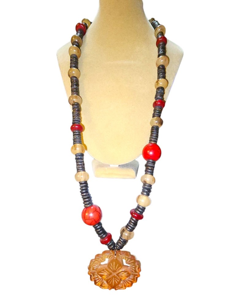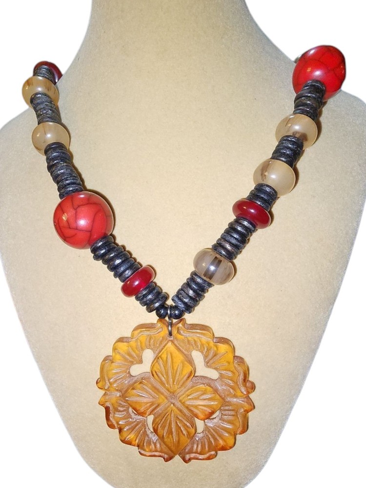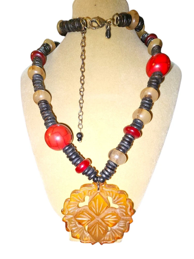The Chicos Multi-Bead Statement Necklace features a carved amber pendant that glows a green hue under blavk light, making it a unique and eye-catching accessory. The pendant also passes the smell test for Amber, The necklace is 37" in length with a lobster closure, perfect for adding a touch of vintage flair to any outfit. The statement pendant, beaded design, and multicolor elements make this necklace a standout piece for women who appreciate Asian-inspired fashion. The Chicos brand ensures quality and originality in this captivating necklace. **Please understand that all items sold at this shop are either used vintage items or new old stock items. They may have crackled glaze or factory flaws or very minor damage. Anything significant, I will point out, so kindly look at the pictures carefully as they are part of my description, and I don't want you to miss anything and be unhappy with your purchase. If you want more pictures please contact me. **I ship USPS *I package all my items up securely to ensure they get to your house in the condition they left mine. *The pictures that you see are of the actual item. *Please inspect each picture by enhancing them or enlarging them to see and imperfections *Any imperfections or concerns of this item I highlight in each picture. *Thank you for stopping by my shop *Items are shipped from a -free home