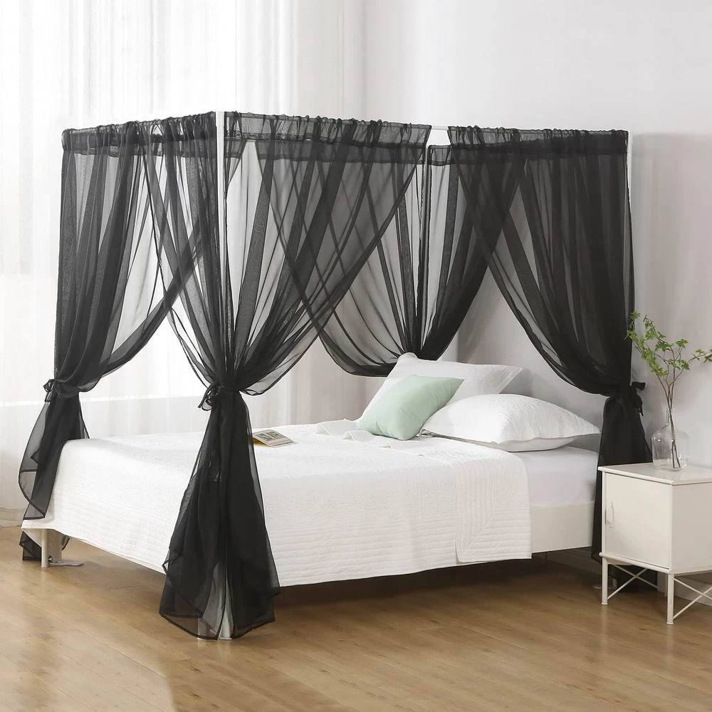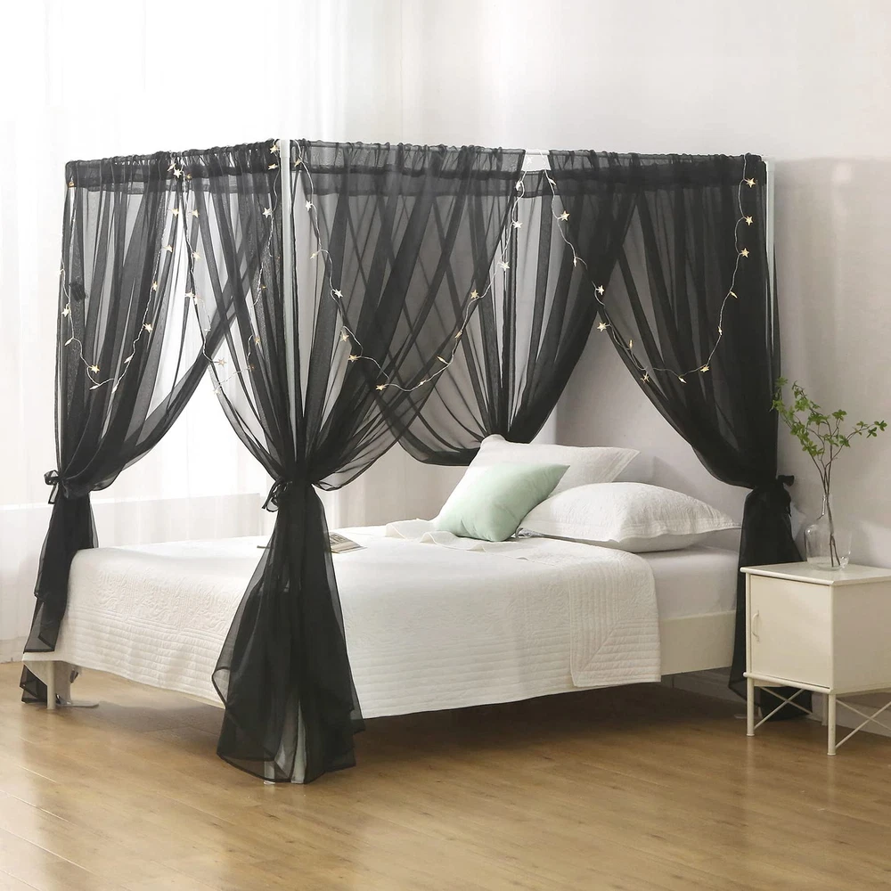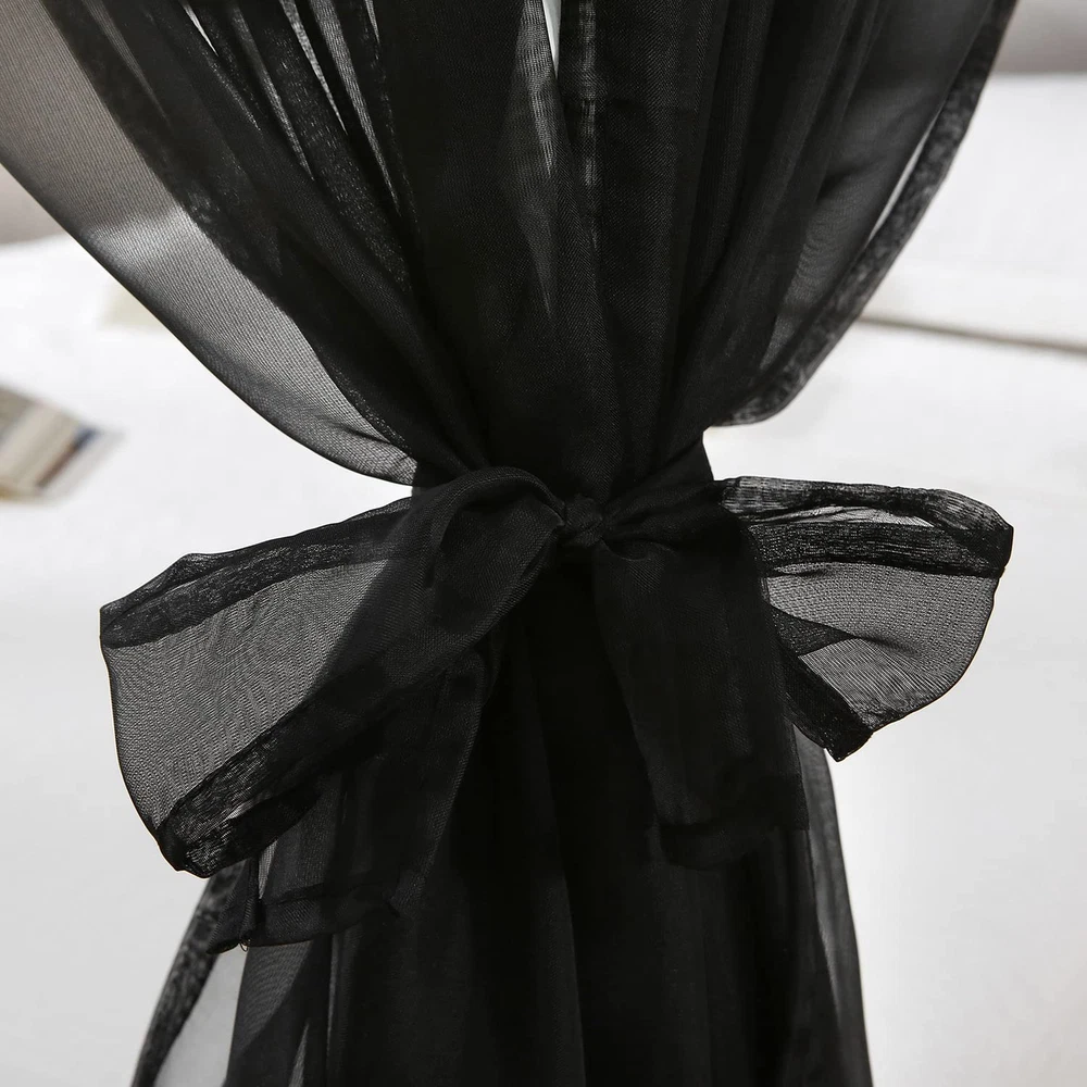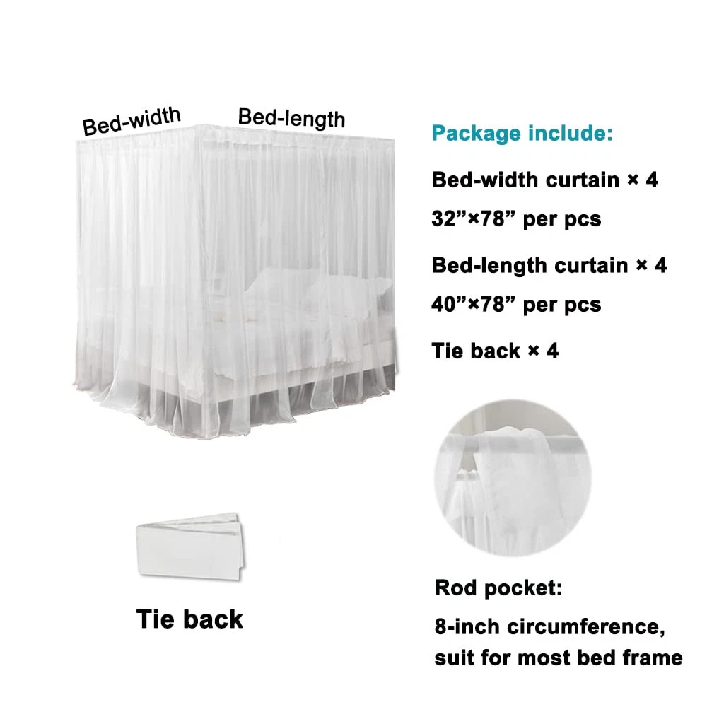 * Suit for Most Bed: 8PCS curtain panels & 4 PCS curtain tiebacks. The four pieces bed-width curtains are 32 inch wide and 78 inch long. The other four bed-length curtains are 40 inch wide by 78 inch long. Suit for Queen Size Bed. The curtain has an 8-inch circumference of the rod pocket, which is suitable for most bed frame rod widths. * Quality Material: The Bed curtains made of high-quality chiffon fabric. It feels comfortable and soft, unlike other affordable chiffon. Provided more suitable environment not disturbed by other things while you sleep. Exquisite edge craft and comfortable fabrics make these curtains beautiful and durable, and you'll definitely find it worth the money. * Multifunction: It's not only used as bed curtain, but also can be used as daily party photo background, wedding background decoration or window scarfs for living room. Other uses for you to image. The material is sturdy and can be reused many times. * Bedroom Style: The romantic chiffon bed curtain can easily help you create a dreamy princess bed, which can instantly make your bedroom more stylish, and this is all-match style curtain. And also can try to use canopy lights to decorate if you like the romantic feeling. It allows you to have a private space of your own, which will be a special gift for you. * Easy To Care: Machine washed on cold cycle and tumble drying on low.