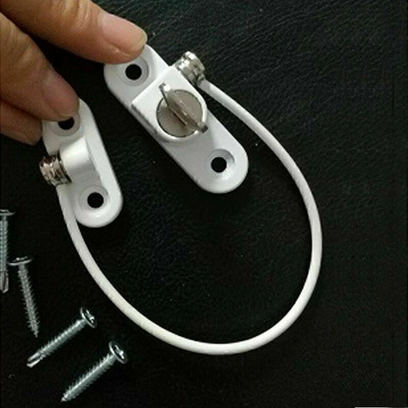 Product Description If you have any questions, please contact customer service first, do not open disputes easily, thank you! Specifications: Brand new and high quality. Color: White. Material: Zinc alloy + plastic + stainless steel wire rope Size: 19cm*6.5cm*4cm/7.48”*2.56”*1.57” Suitable For: UPVC, Wood, Aluminium & Metal. Can Be Locked & Unlocked As Required. Self Drilling Screws Supplied. The Lockable Cable Window Restrictor is a simple to fit device that limits the distance a window can open, ideal for home & commercial safety. When the cable is in place the distance the window can open is limited, by using the key the cable can be removed from one end and the window can be opened fully. Designed specifically with child safety in mind. Prevents fatalities and injuries. Suitable for most types of window and small doors. Perfect for home, public and commercial applications Features: Universal window and door restrictor Prevents fatalities and injuries Coated with an MRSA repellent Can be fitted to all materials Can be used in hospitals, hotels, homes and schools Suitable for every type of opening window Discourages burglars and intruders For security and safety Provided for Health and Safety What's included: 1 x Window And Door Security Restrictor About Us We accept all payments authorized by eBay. powered by