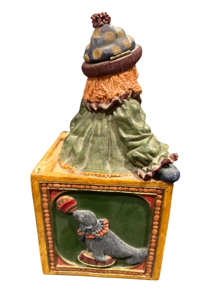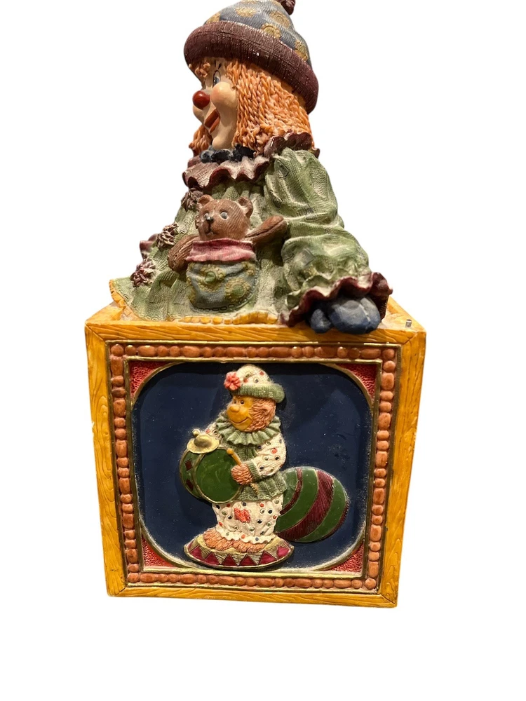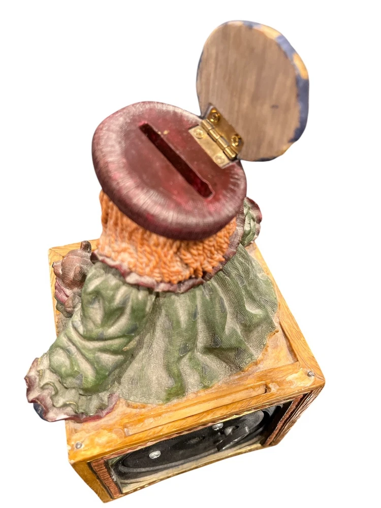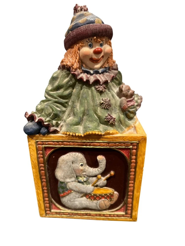 The Children's Clown Circus Musical Coin Box Elephant Seal Monkey Piggy Bank is a whimsical and fun collectible still bank that will delight both children and adults alike. This unique piggy bank features a colourful circus theme with a clown, elephant, seal, and monkey characters, making it a charming addition to any collection. The musical coin box adds an extra element of entertainment, making saving money a fun activity for kids. Perfect for adding a touch of nostalgia to any room or as a thoughtful gift for a collector. Approx 8.5” heigh 4” wide