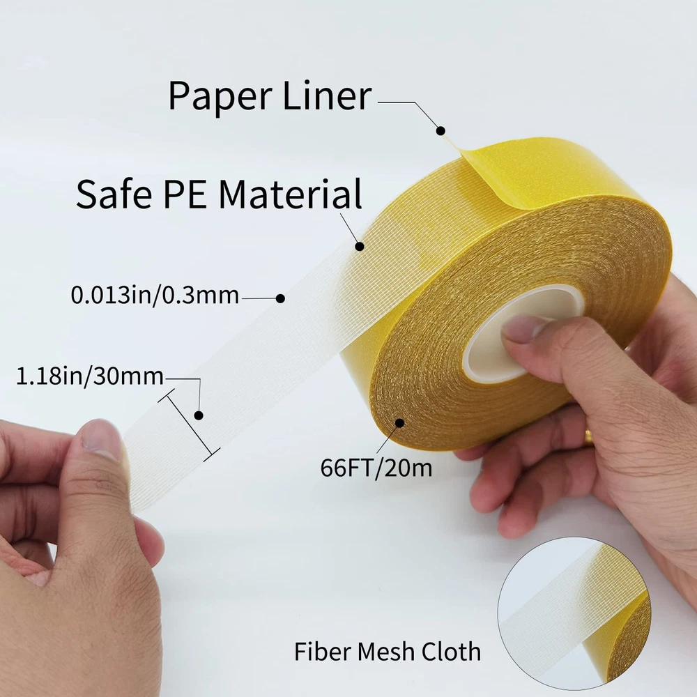 The double sided installation tape is made of PE and super strong fabric mesh fabric, coated with super adhesive transparent adhesive under industrial standards, providing high quality quality. 【HIGH STICKY DOUBLE SIDED TAPE】: Our fiberglass mesh fabric tape is made of tightly woven cloth fibers, PE as basic material, and high-quality hot melt adhesive. It is waterproof that is also the perfect choice for outdoor tape or clothes tape. 【MULTIFUNCTION DOUBLE SIDED TAPE】: This double sides clear tape strips are suitable for use at home, office, school, etc. Ideal for home accessories such as rugs, refrigerators, photo frames,nameplates, sofa cushions, doormats, car mats, posters, mirrors, DIY projects, etc.and suitable for different surfaces such as tile, walls, glass, plastic,hardwood, tile, plastic, concrete etc. 【REMOVABLE DOUBLE SIDED TAPE FOR CLOTHES】:This double-sided mounting tape with better stickiness and fitness. Hold your clothing securely against your skin or undergarments. It is very easy to cut it to the size you need, take control of your clothes with our premium fabric tape double sided, designed to help you with all your fashion emergencies and clothing adjustments. 【USAGE METHOD】Make sure the surface is clean and free of moisture and dust before use. Trim the adhesive tape to the desired size, eliminate the yellow paper backing, and fasten it onto the surface. Remember to press down firmly. 【100% GUARANTEE】You will get a roll of heavy duty double sided mounting tape with the size of 1.18inx66ft. We promise to provide the Best product and customer service for you. If have any questions or are unsatisfied, please feel free to contact us.