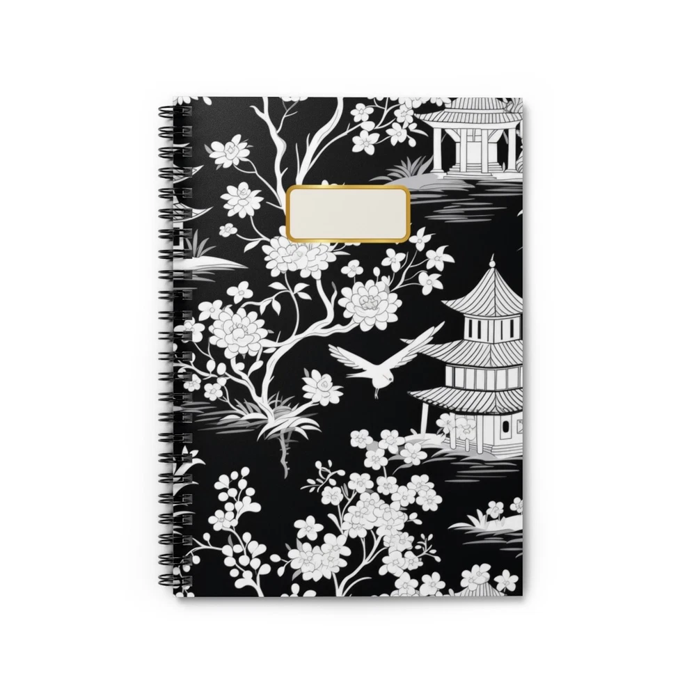 Introducing our exquisite Chinoiserie Spiral Notebook, a perfect blend of elegance and functionality. From its stunning cover adorned with intricate Asian-inspired patterns to the high-grade paper pages within, this sketchbook is a true treasure for every writer, artist, or dreamer. Whether you want to jot down your thoughts, sketch breathtaking landscapes, or keep your notes organized, this Chinoiserie Spiral Diary is here to inspire your creativity. Its compact size makes it ideal for on-the-go use, and the spiral binding ensures easy page flipping. Bring a touch of timeless beauty to your everyday life with this enchanting notebook that effortlessly fuses Eastern charm with practicality. - Ruled line paper - The durable printed cover - Dark grey back cover - 118 ruled line pages (59 sheets) - Front cover print - Height, in 7.99 - Length, in 5.98 - Depth, in 0.59