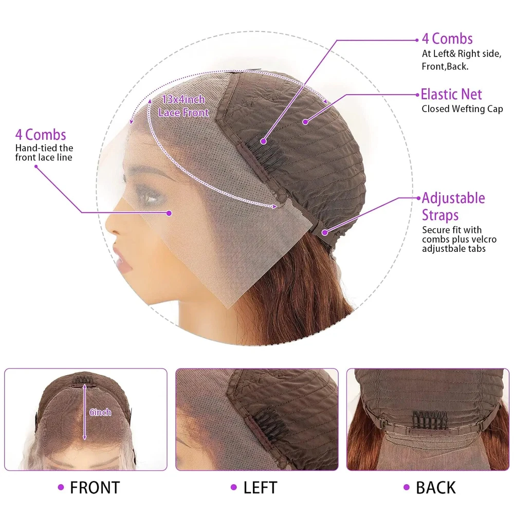 Reddish Brown Hd Lace Front Wig Preplucked Brazilian 4x4 Closure Human Hair Wigs