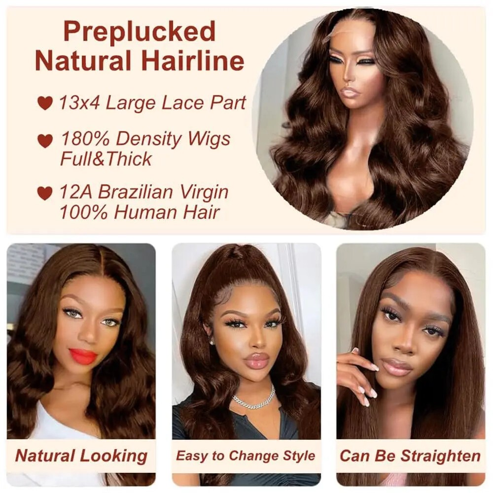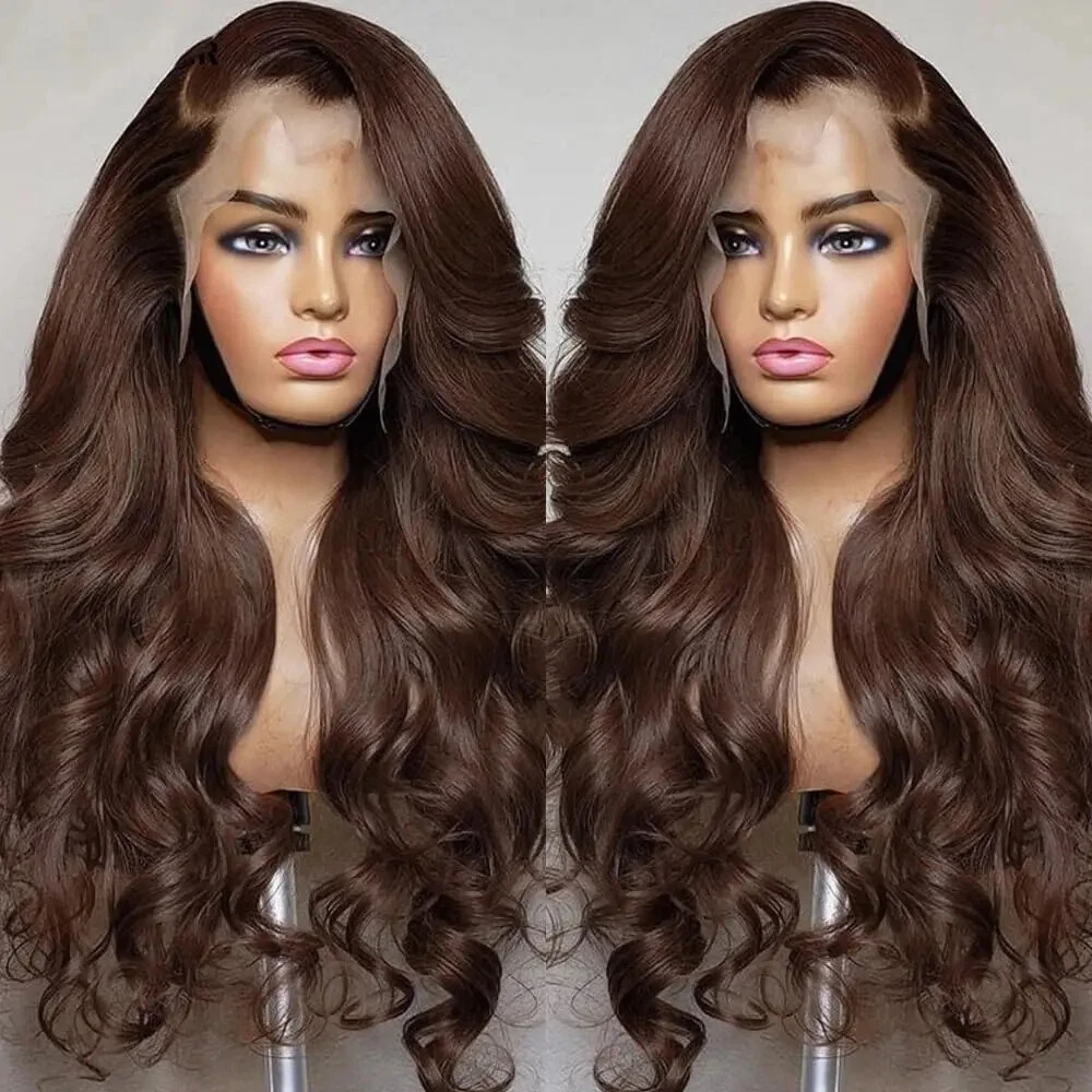 Chocolate Brown Lace Front Human Hair Wigs Pre Plucked Body Wave HD Lace Wigs