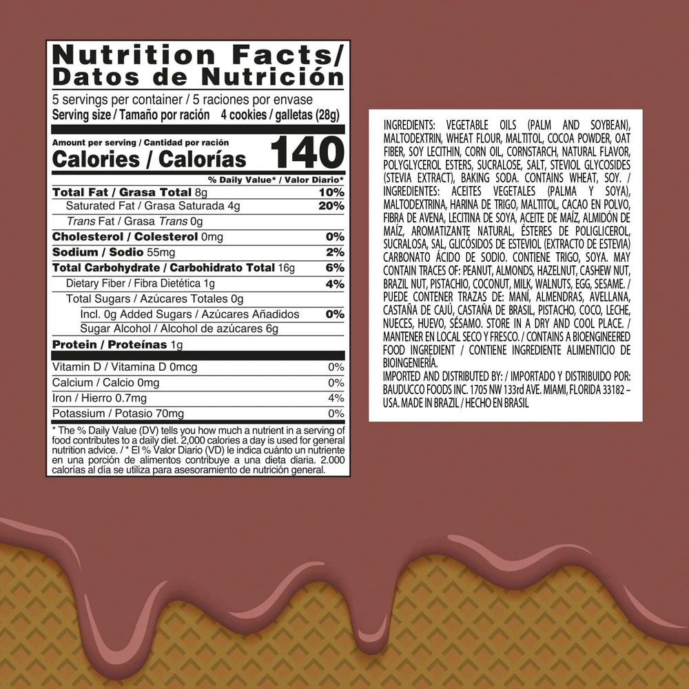 Bauducco Chocolate Wafer Cookies - Sugar Free Delicious & Crispy Wafers with 3 Delicious, Indulgent Decadent Layers of Chocolate Flavored Cream - 0g of added sugar - Great for Snacks & Dessert - No Artificial Colors or Flavors, 5oz (Pack of 1) LIGHT AND EXTRA CRISPY: Delicious sugar free Chocolate wafers, made with Stevia and with 0g of added sugar. Have a bite, and you’ll experience a traditional Italian-style wafer. NO ARTIFICIAL FLAVORS OR COLORS: Our Bauducco chocolate wafer cookies are made with no artificial flavors or colors. There is no high fructose corn syrup in the formula. 3 LAYERS OF CREAM: Bauducco Wafers come 3 Delicious, Indulgent Decadent Layers of Chocolate Flavored Cream, with much more flavor for you to enjoy. PERFECT ON EVERY OCCASION: There are delicious options for any moment. You can enjoy it with coffee, tea, milk, juice, or even as an ingredient!