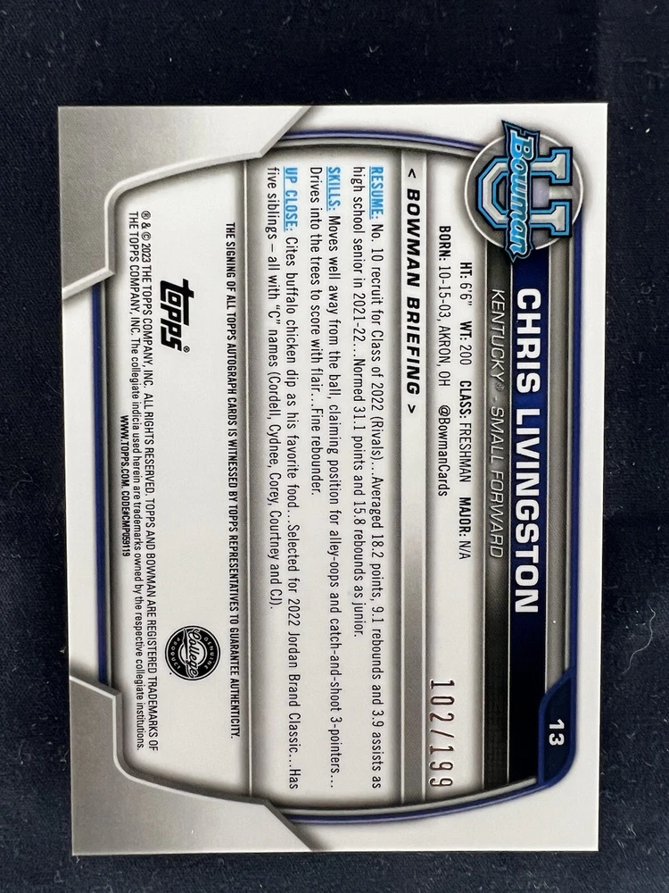Chris Livingston 2023 Bowman U Chrome #13 1st RAY WAVE AUTO REFRACTOR Bucks /199