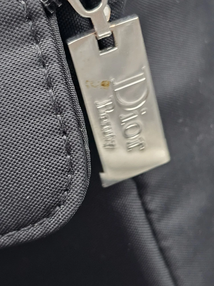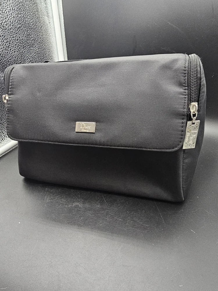 Christian Dior Black Nylon Beauty Makeup Pouch Cosmetic Case With Handle Travel. There are some blemishes from use. See photos
