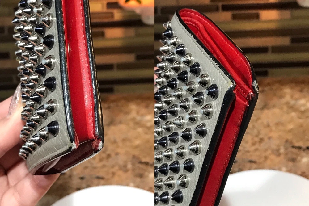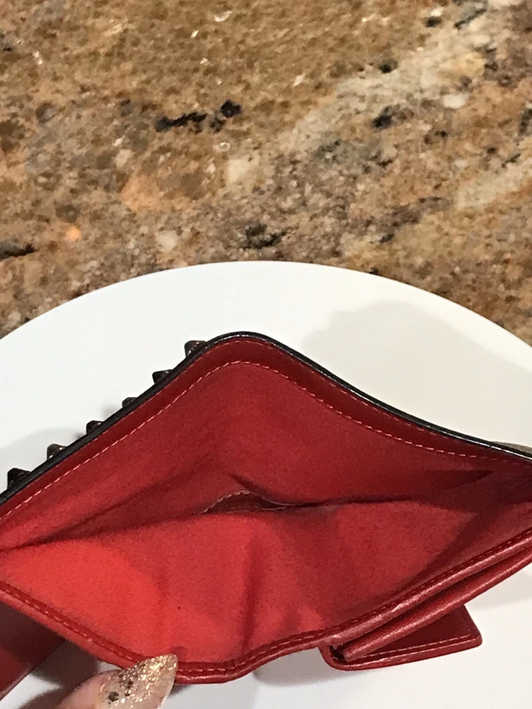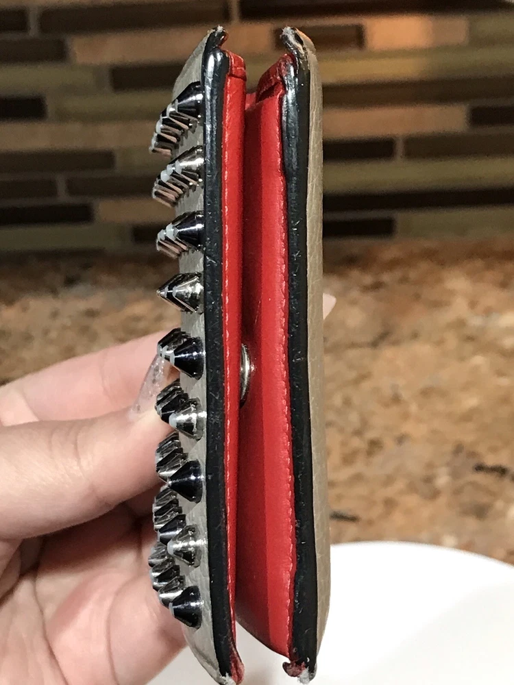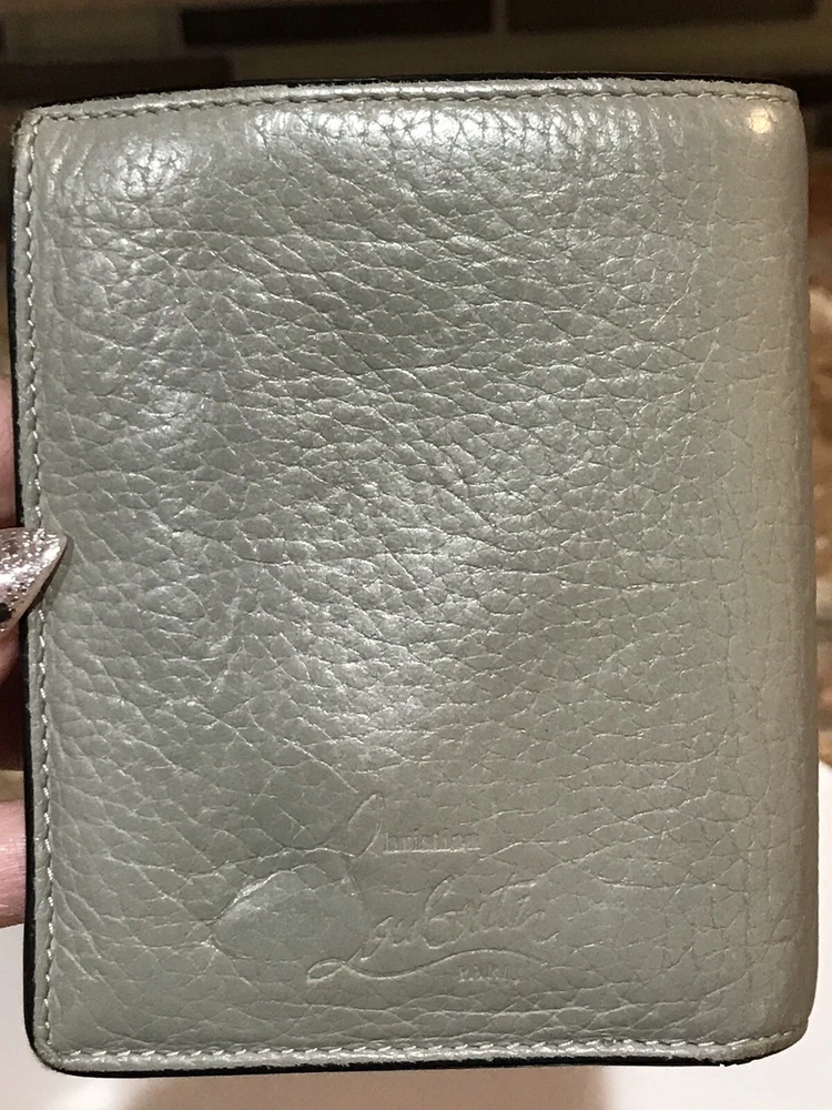 Got this pre-owned Louboutin wallet and it’s even better than expected! The gray calfskin leather is so luxe, and the signature studs add serious edge. Minor wear on the corners and a bit of coin residue, but honestly, it’s barely noticeable. Love the separated compartments and card slots—so functional. For the price, it’s an absolute steal! Highly recommend if you want designer quality without the brand-new price tag.