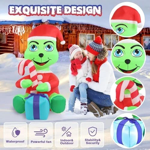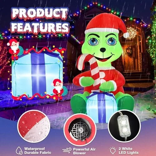 30 Days Return Policy Fast Delivery Trusted seller Christmas 4ft Green Ugly Monster Inflatables Outdoor Decorations with LED Lights Funny Xmas Blow ups for Holiday Outside Indoor Décor Party Yard Garden Lawn Product Description Unique Appearance Design:Cute green ugly monster sitting on the ground with smile. He was carrying a red and white walking stick in his arms, give a person a kind of amiable feeling. Built-in eye-catching super bright pure white Energy-Saving LED lights, It will attract guests and neighbors at night, you will definitely receive a lot of compliments. It also can be used as any other holiday decoration Durable & Waterproof Material: This 4ft tall green ugly monster inflatable Halloween yard decoration is made of excellent quality thickened polyester material with tight stitching. With its good waterproofing ability, fade resistance, lightweight and breath ability, it offers longevity, vibrant colors, and easy maintenance. Accompany you on Christmas year after year make our inflatable decorations is an excellent choice for anyone looking for a quality inflatable decor Safety & Reinforcement Design: This cute christmas outdoor decorations monster is equipped with 2 fasten ropes, 4 ground stakes, that make it secure easily in outdoor settings such as gardens and lawns. No need to worry that it will fly away with the wind. Our green giant monster blow up lawn decor also come with a built-in fan and a safe adapter plug, making it very safe for outdoor use, so that you can enjoy the joy of the vacation with more confidence Installation and Precautions:First put it on the flat ground, zip up the zipper .Then fix the inflatable decoration by the stakes and make sure it is secured on the ground. Finally, it will be perfectly presented in front of you. TIPS: do not put anything into the blower and inflatable. Please make sure the air blower is facing up when inflating. The air blower facing the ground will affect the effect of inflating Versatile Holiday Decor: Whether you want to enhance your yard, lawn, porch, or garden, restaurants, cafes, home, indoor and outdoor use, this Christmas blow up decoration will add a touch of fun to any space. Perfect for Halloween parties, Christmas night event, haunted houses, or simply delighting trick-or-treaters, this captivating display will cast a spell of Christmas magic like never before Shipping Returns Payment Shipping Shipping is FREE to all addresses other than APO/PO boxes in the lower 48 states. All our stock ships from US-based warehouses. Shipped via USPS or UPS (depending on location and package weight) Unless stated otherwise, all orders will ship within 24-72 hours of your payment being processed. Check our feedback to see the great reviews of FAST shipping we offer. Returns As our valued customer, we will do our best to make sure the product you receive arrives to you on time and as expected. If you are not satisfied with your purchase, please contact us within 30 days of receiving your order to process a return. Payment We currently accept payment via eBay managed payments only. Once payment is cleared, we will dispatch your shipment within 1-3 business days. Please refer to the "Shipping" tab for more information regarding shipping speed to your destination.
