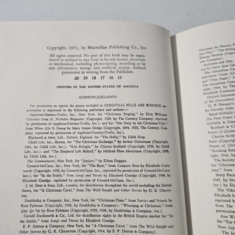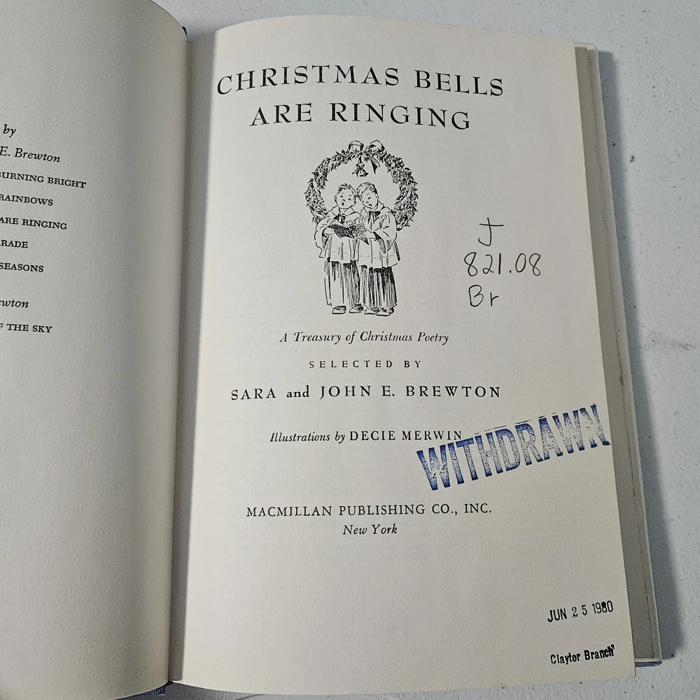 Delve into the festive spirit with "Christmas Bells are Ringing," a charming children's book authored by S.J.E. Brewton and delightfully illustrated by Decie Merwin. Published by Macmillan in 1951, this hardcover edition is a lovely piece for both young readers and collectors alike. The book is steeped in the Christmas theme, offering a glimpse into the holiday's rich history and traditions. It comes complete with a dust jacket, making it an attractive find for anyone keen on adding a piece of literary nostalgia to their collection. With its original print from 1951, this book is a tangible piece of North American holiday heritage.