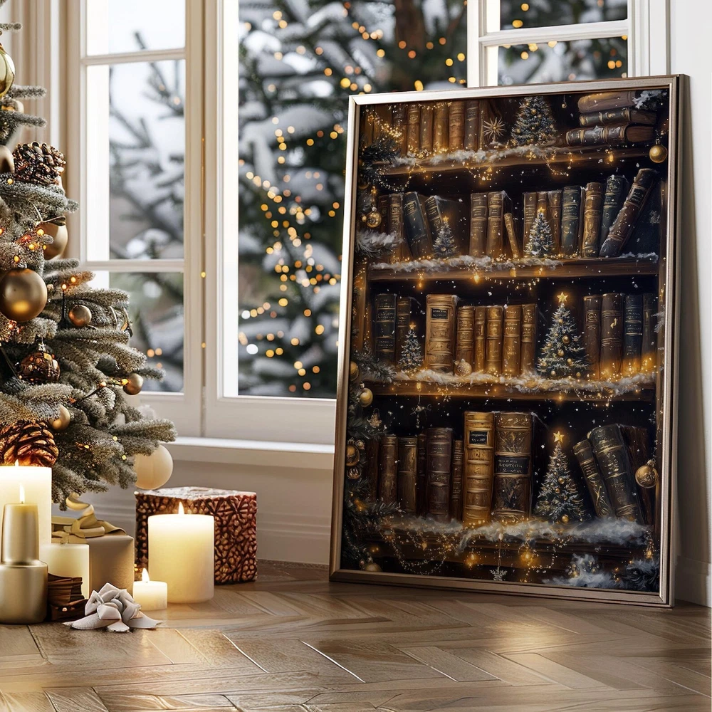 Christmas Bookshelf Art Print Reading Nook Christmas Decor Book Lover Holiday Wall Art Festive Printable For Home Library Material: Premium luster photo paper Print type: Inkjet printing One side printed + The finish provides the highest possible resolution and color saturation + Lasts up to 200 years in color and 400 years in black-and-white + Printed on high-quality resin-coated photo base paper medium + Posters can be hung with double-sided tape, tacks, or framed + Hand washing with a gentle cry cloth is recommended for extended durability I will hand select the best choice of paper for your chosen design to ensure top quality results for a beautiful, bright and luxurious print. All prints are sealed in cellophane slips for protection during transportation, and are shipped in a protective cardboard envelope.