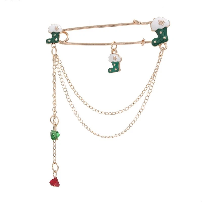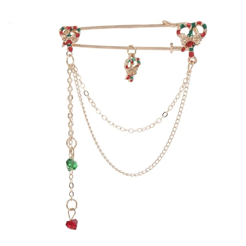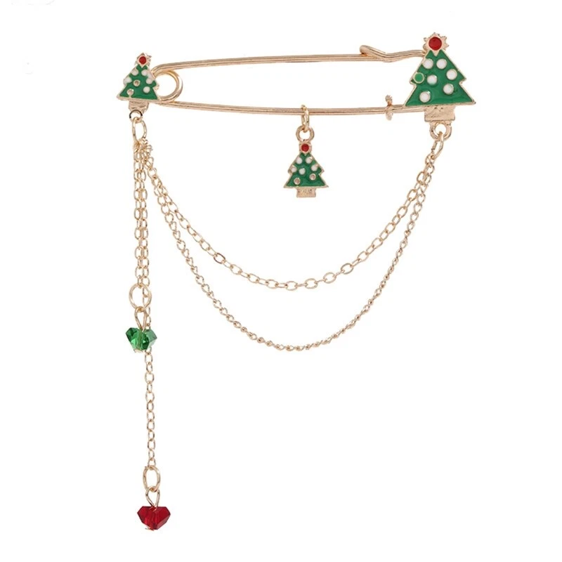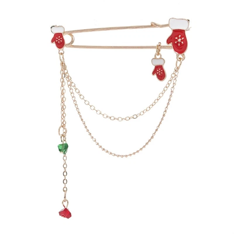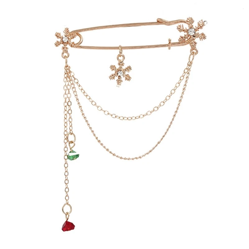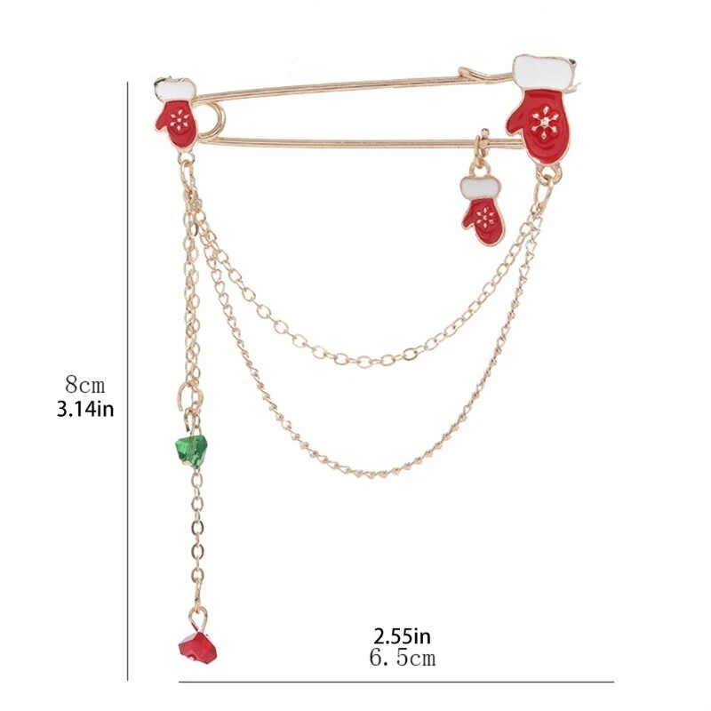 Christmas Brooch Tassel Chain Snowflake Jewelry Crystal Lapel Pin Xmas Breastpin Features: and high High high metal alloy, durable and no fadin. Inlaid clear red&green faux crystal, make the brooch pin is more eye-catching and special. The brooch uses the tassel chain retro look looks more attractive. Full of Christmas holiday atomosphere. A for ideal costume accessories choice on party. Christmas themed: snowflake, Xmas tree, sock, candy cane, glove patterns. Can be clipped on sweaters, dresses, collar, shawls, blouse, for and suit. at Christmas. Also is a beautiful to your famliy and friend at any other occassions. Specification: Metal Optional Color: 1, 2, 3, 4, 5, 6 Size: approx. 6.5x8cm/2.55x3.15in Quantity: 1 pc Note: 1cm=10mm=0.39inch No retail package. Please allow 1-3mm error due to manual measurement. pls make sure you do not mind before you bid. Due to the difference between different monitors, the picture may not reflect the actual color of the item. Thank you! Package includes: 1 x Brooch Pin(other accessories in the picture is not included.)